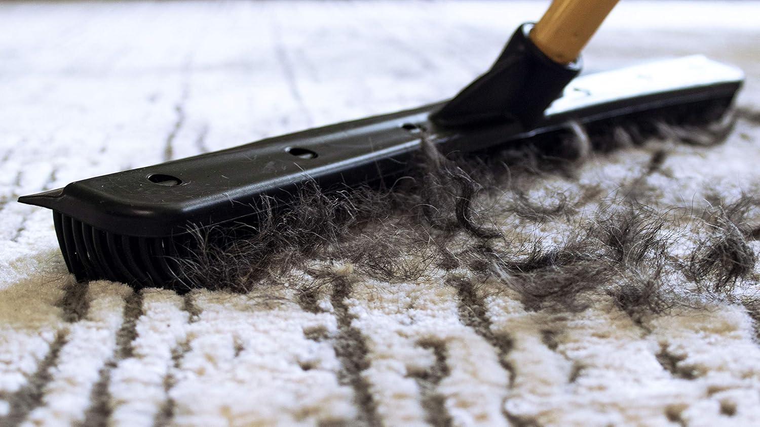 - Effortless Pet Hair Remover: The rubber broom is designed to remove dog, cat, and other pet hair effectively using short, sharp strokes while pulling towards you. This technique lifts embedded hair from carpets and rugs with ease, outperforming traditional brooms and vacuums for a deeper clean.