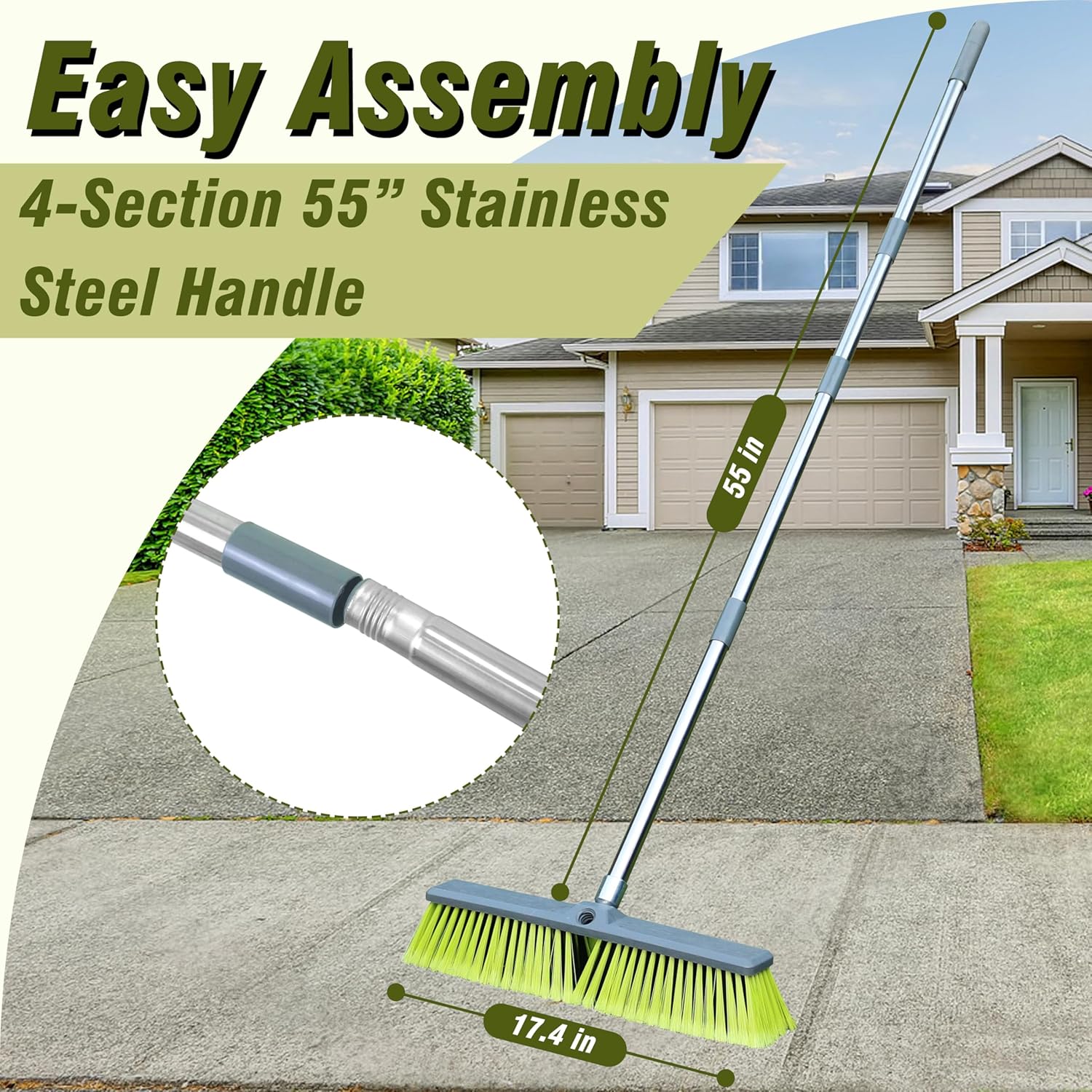 PHYEX Upgraded 18" Push Broom with Adjustable Long Handle, Total Length is 55", Multi-Surface Floor Scrub Brush for Cleaning Deck, Patio, Garage, Driveway