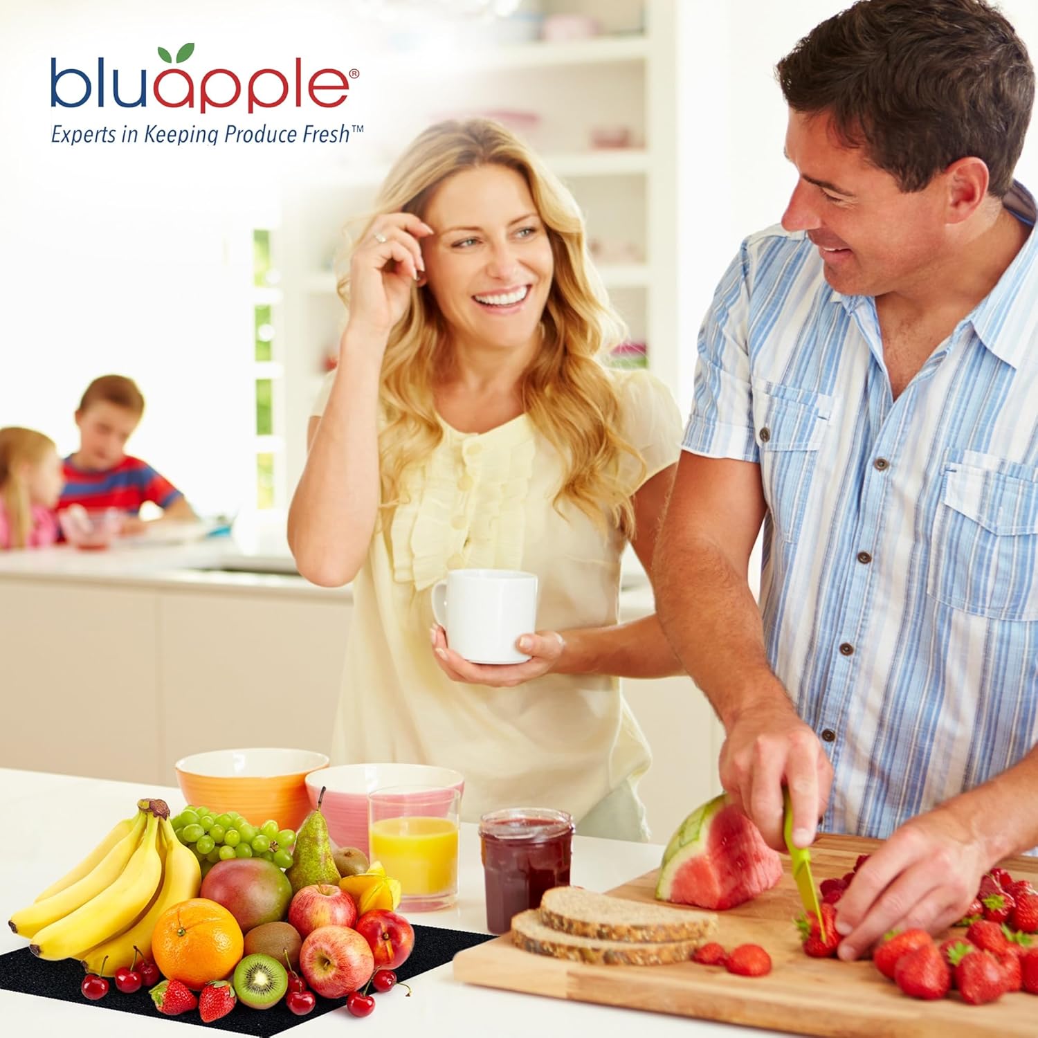 Bluapple FreshMats, Refrigerator Bin Liner, Fridge Drawer Mats, Crisper Life Extender Liner Keeps Produce Fresh Longer, Anti-Bruising, for Air Circulation, Washable & Reusable (4-Mats, 12x15, Black)
