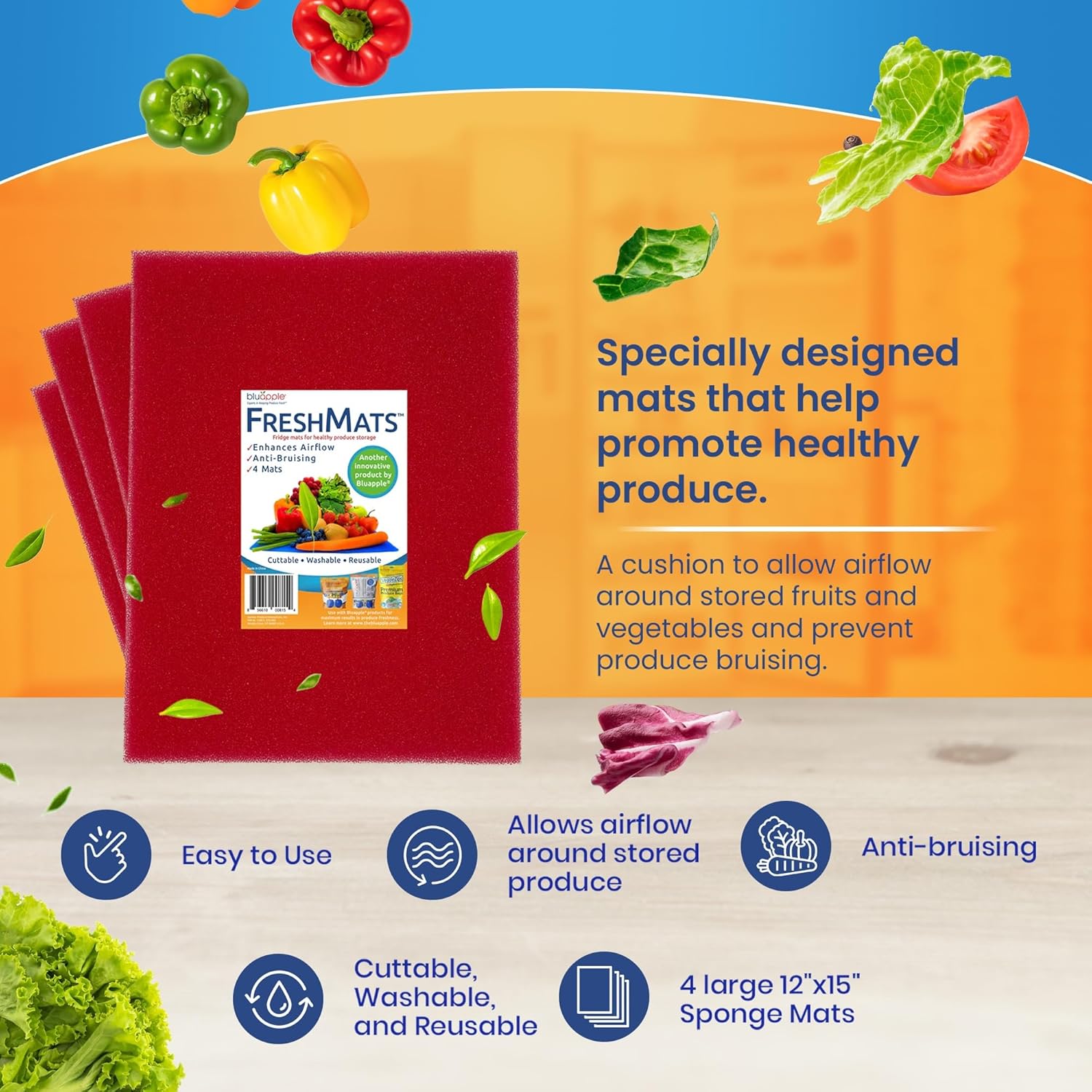 Bluapple FreshMats, Refrigerator Bin Liner, Fridge Drawer Mats, Crisper Life Extender Liner Keeps Produce Fresh Longer, Anti-Bruising, Helps Air Circulation, Washable & Reusable (4-Mats, 12x15, Red)