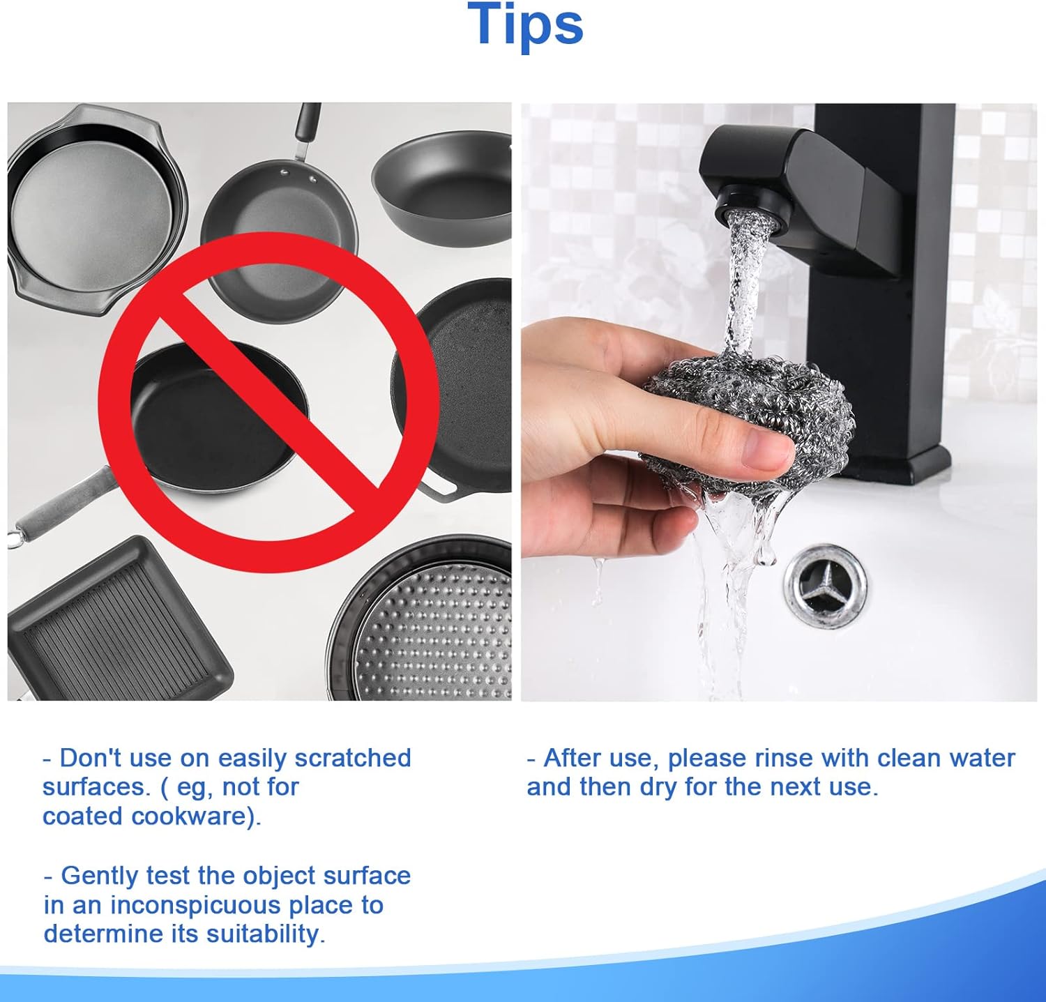 - MULTIPURPOSE: In addition to in the kitchen and bathroom, you can use them in the outdoor furniture and garage. Great for cleaning uncoated cookware, bakeware,ovens, grill racks, pots, pans, sinks, spatulas, etc.