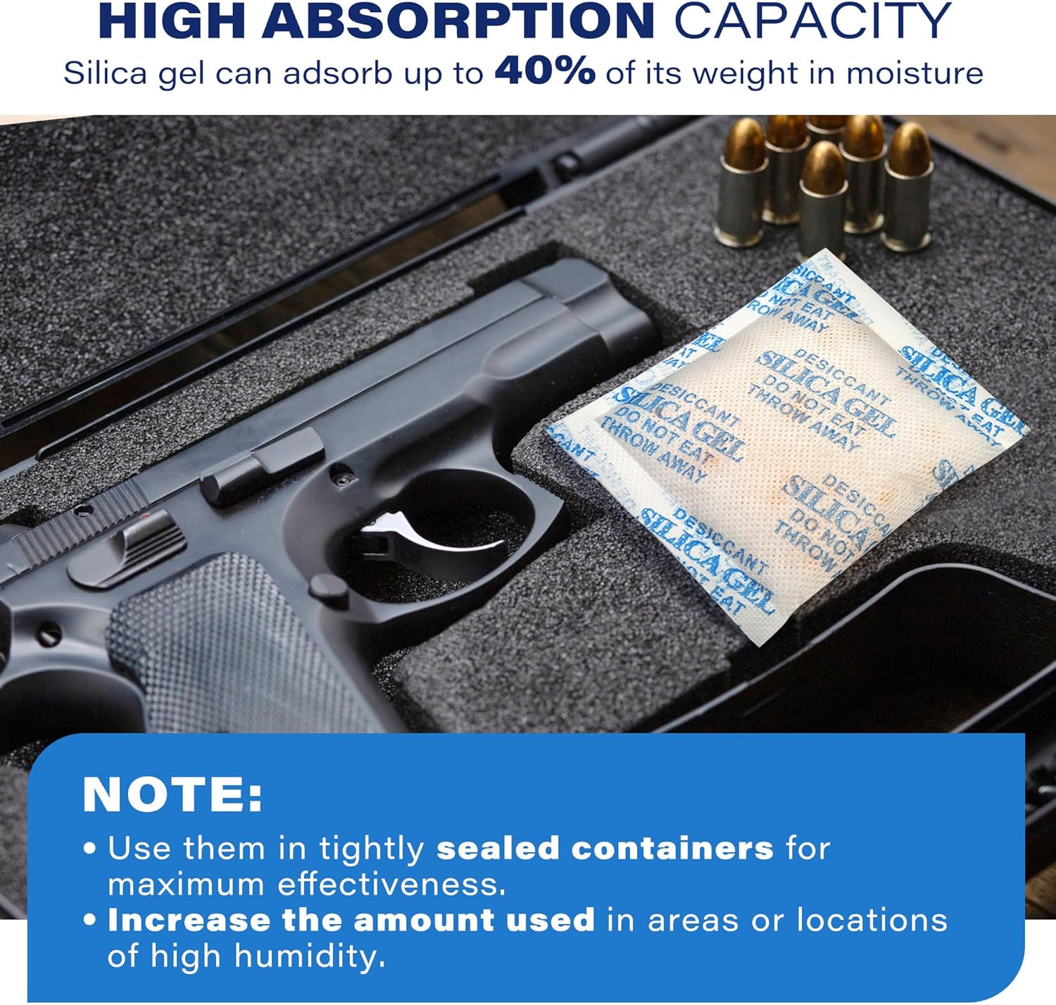 - Premium Material: silica gel desiccant packets with premium quality coated paper for "Ultimate Moisture Absorption and Heat Resistance for Reuse" (Place in the Oven for 0.5 -2.0 hours at 200-250F Or Microwave for About 10-30 Minutes at DEFROST.)