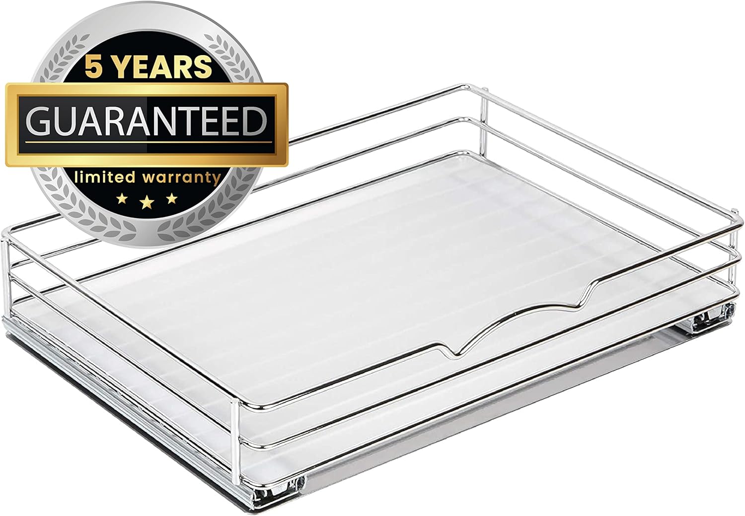 Pull Out Cabinet Organizer for Spices, Cans - Heavy Duty with Lifetime Limited Warranty- Pull Out Spice Rack- Cabinet Pull Out Shelf for Cans,Dishes, Etc, 14-3/8"Wx 10-1/2"D x 2-3/4” H, Chrome