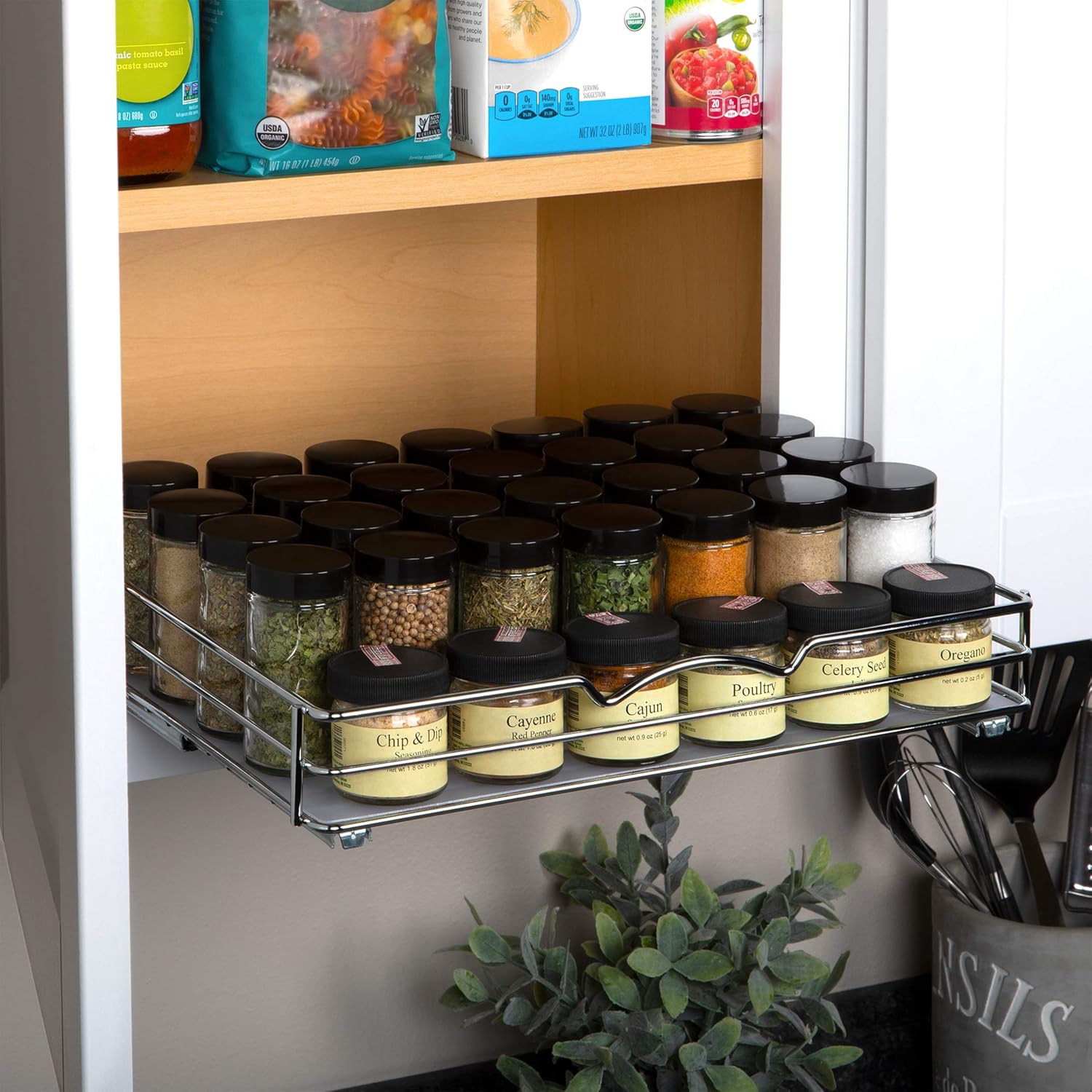 - HEAVY DUTY SPICE RACK ORGANIZER FOR CABINETS: If you have limited space in your kitchen to store your spices or are tired of not being able to find anything in a mess of jars and bottles, Than this slide out spices organizer is the perfect solution for you to declutter your spice rack and finally organize your kitchen cabinets