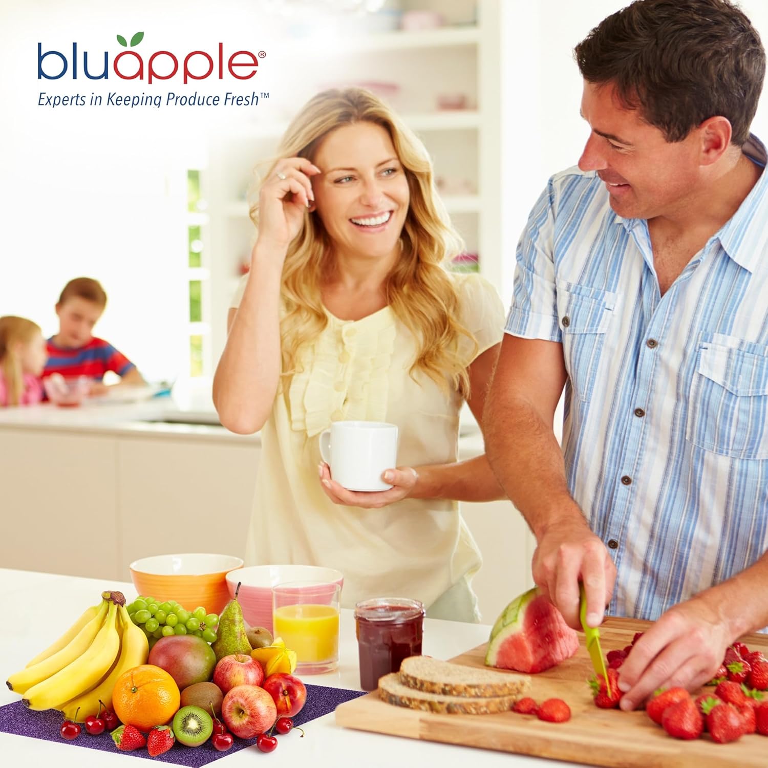 Bluapple FreshMats, Refrigerator Bin Liner, Fridge Drawer Mats, Crisper Life Extender Liner Keeps Produce Fresh Longer, Anti-Bruising, for Air Circulation, Washable & Reusable (4-Mats, 12x15, Purple)
