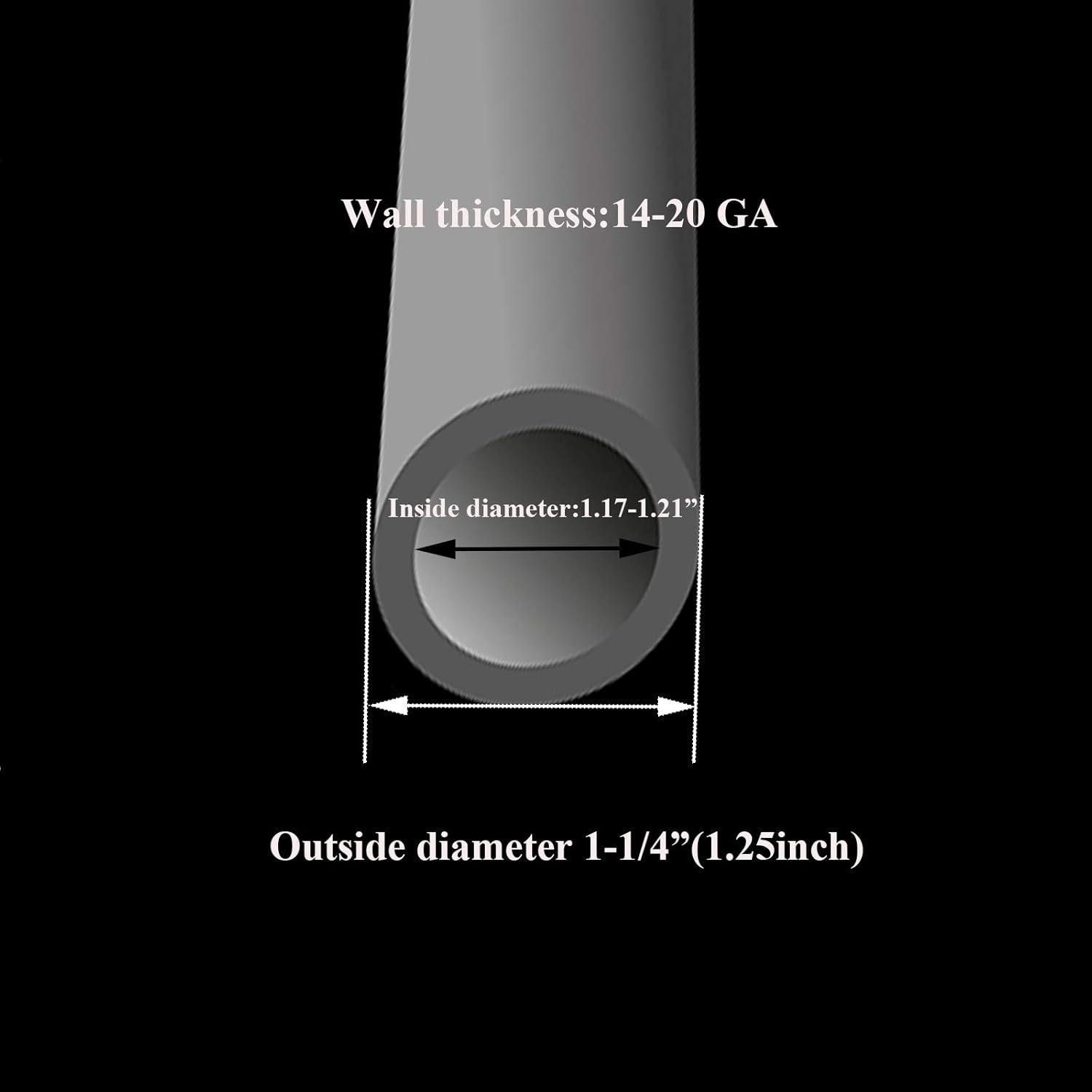 - Designed to Perfect Fit 1.17-1.21" of pipe tubing (Inner Diameter). The outside diameter of the Furnigear Black Plastic Plugs End Caps is 1 1 1/4 inch. Used with 14-20 Gauge Tube Wall Thickness. (Important: Please measure the inner diameter of your pipe before ordering.)