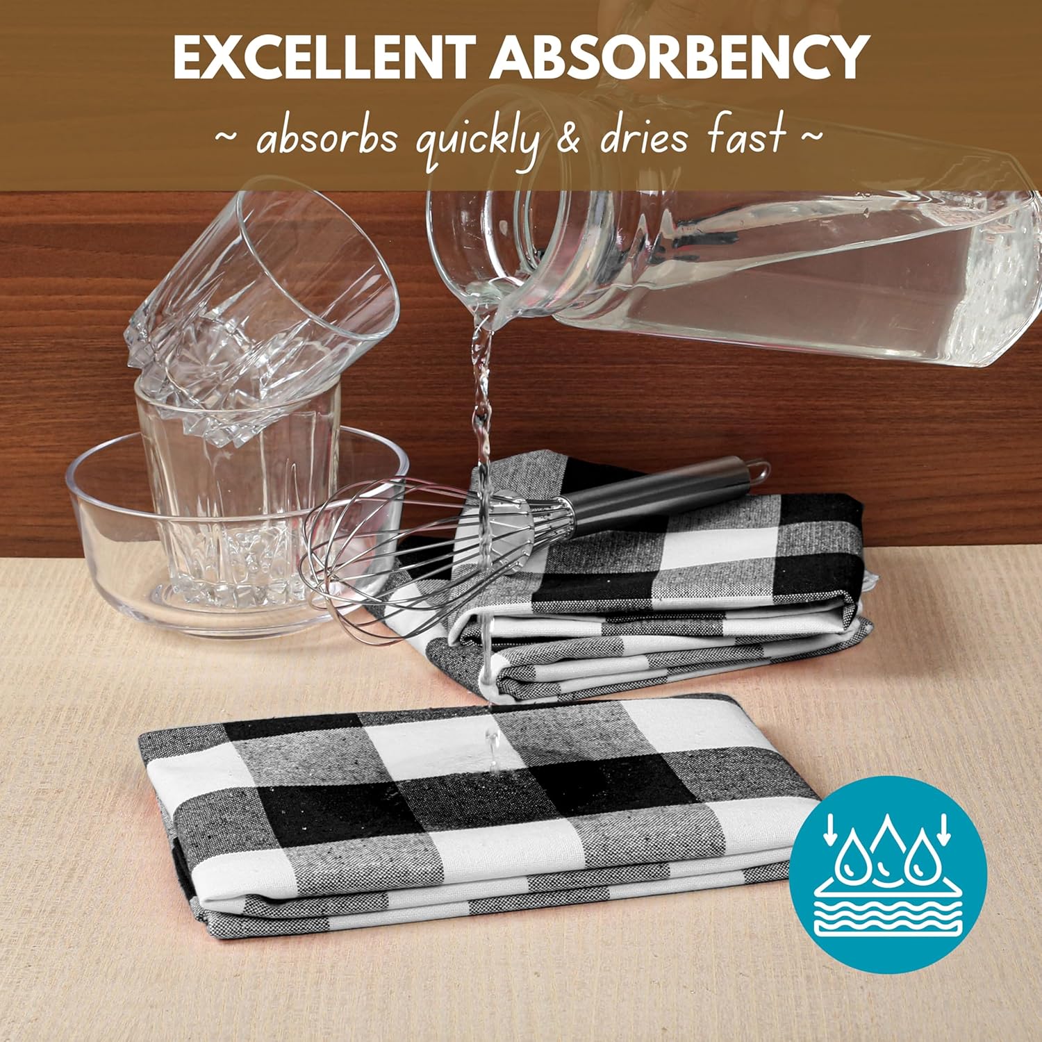 - SUPER ABSORBENT: Say goodbye to spills and wet dishes! Our towels soak up water and messes in a flash, making your kitchen cleanup quick and effortless.