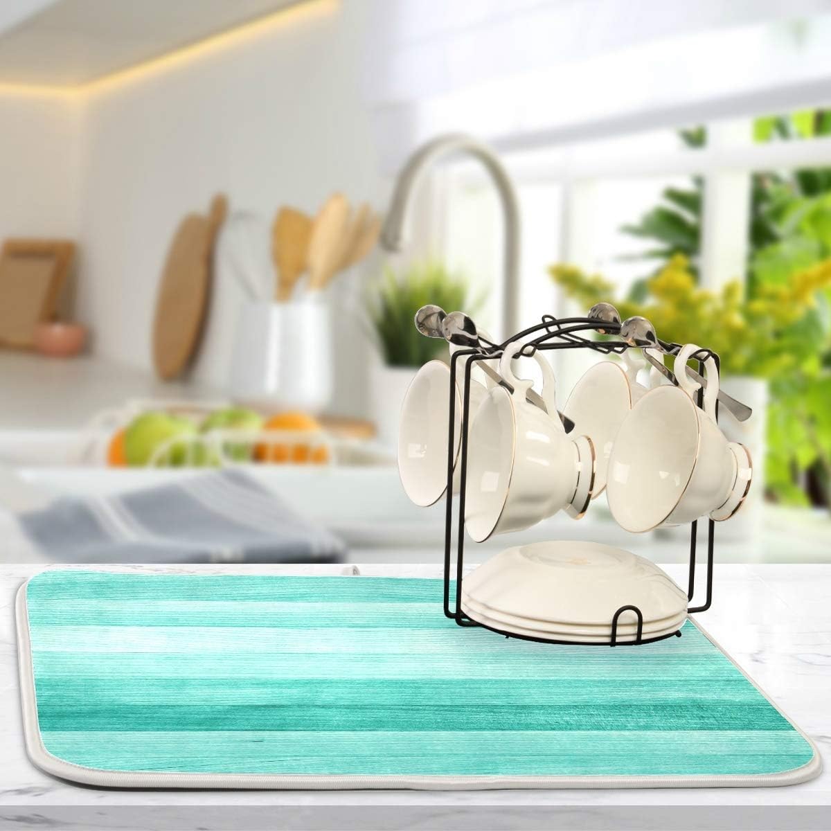 Teal Turquoise Green Wood Texture Dish Drying Mat 18x24 for Kitchen Green Blue Wooden Printing Dishes Pad Dish Drainer Rack Mats Absorbent Fast Dry Kitchen Accessories