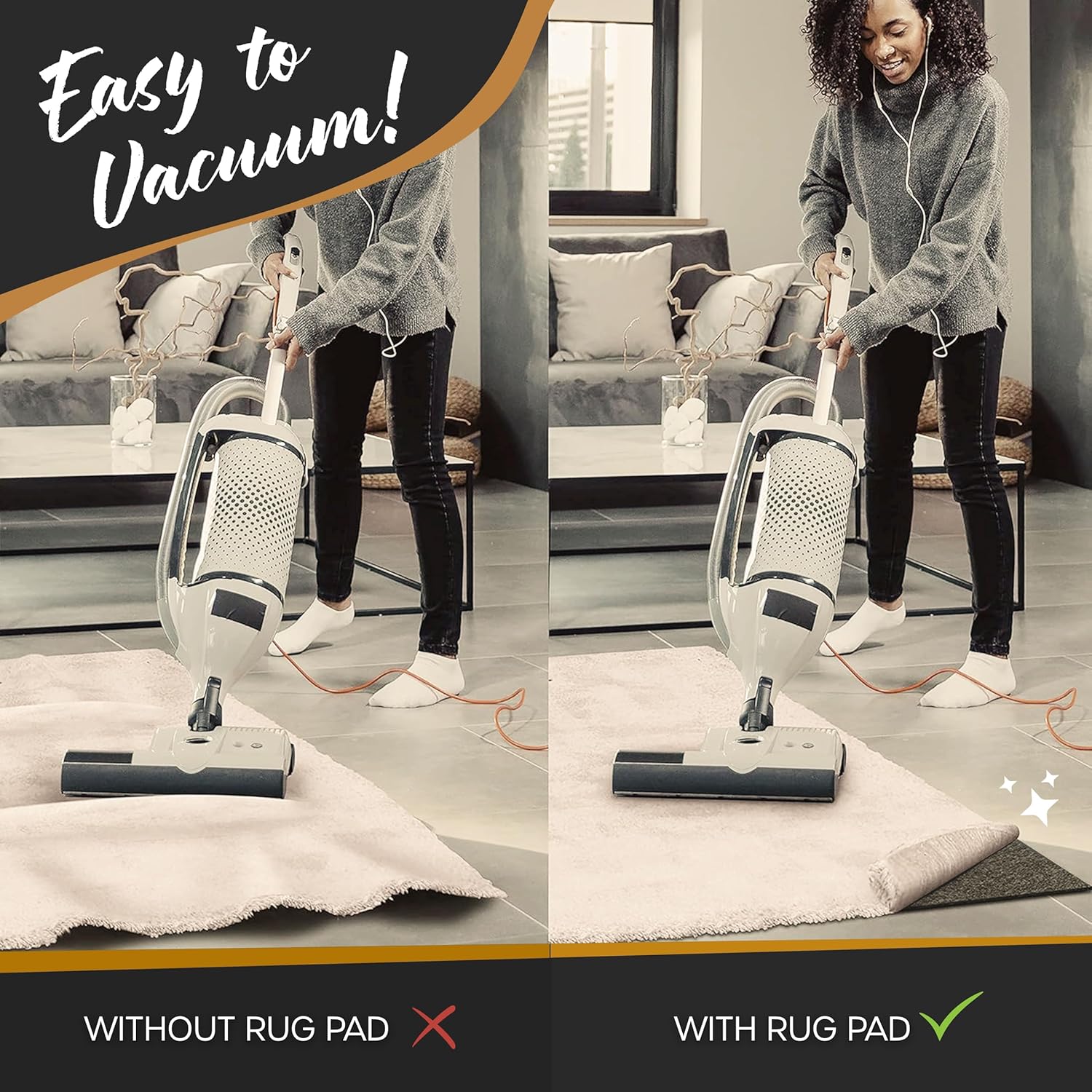 - All-in-One Protection, Cushion & Grip: Upgrade your space with the Nevlers Non Slip Rug Grippers ! Our non slip rug pads for hardwood floors balance stability, cushion & rug grip for the ultimate floor defense. The soundproofing & insulating features minimize noise, while its cushioned, nonslip rug gripper design extends the life of your rug & enhances its appearance. Perfect for workout spaces or homes with kids, this sound-absorbing carpet pad does more than just keep your rug in place!