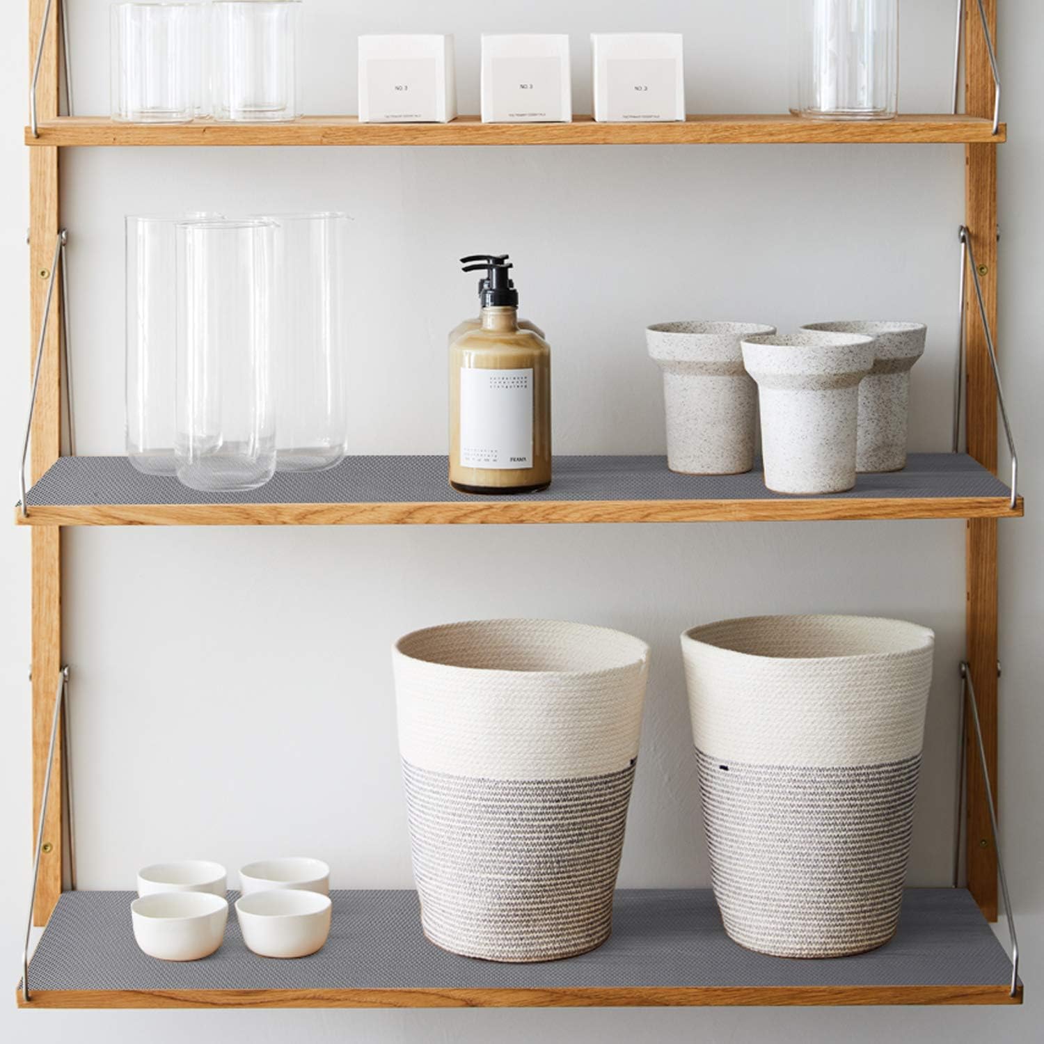 - SAFE MATERIAL AND NON ADHESIVE: Our kitchen shelf liner is made of high quality food-graded material, which is soft and durable without odor or BPA. So it is safe to be used directly in contact with fruit and vegetable. Whatโs more, the drawer liner is non-adhesive so you can easily remove to clean or to change the liner.
