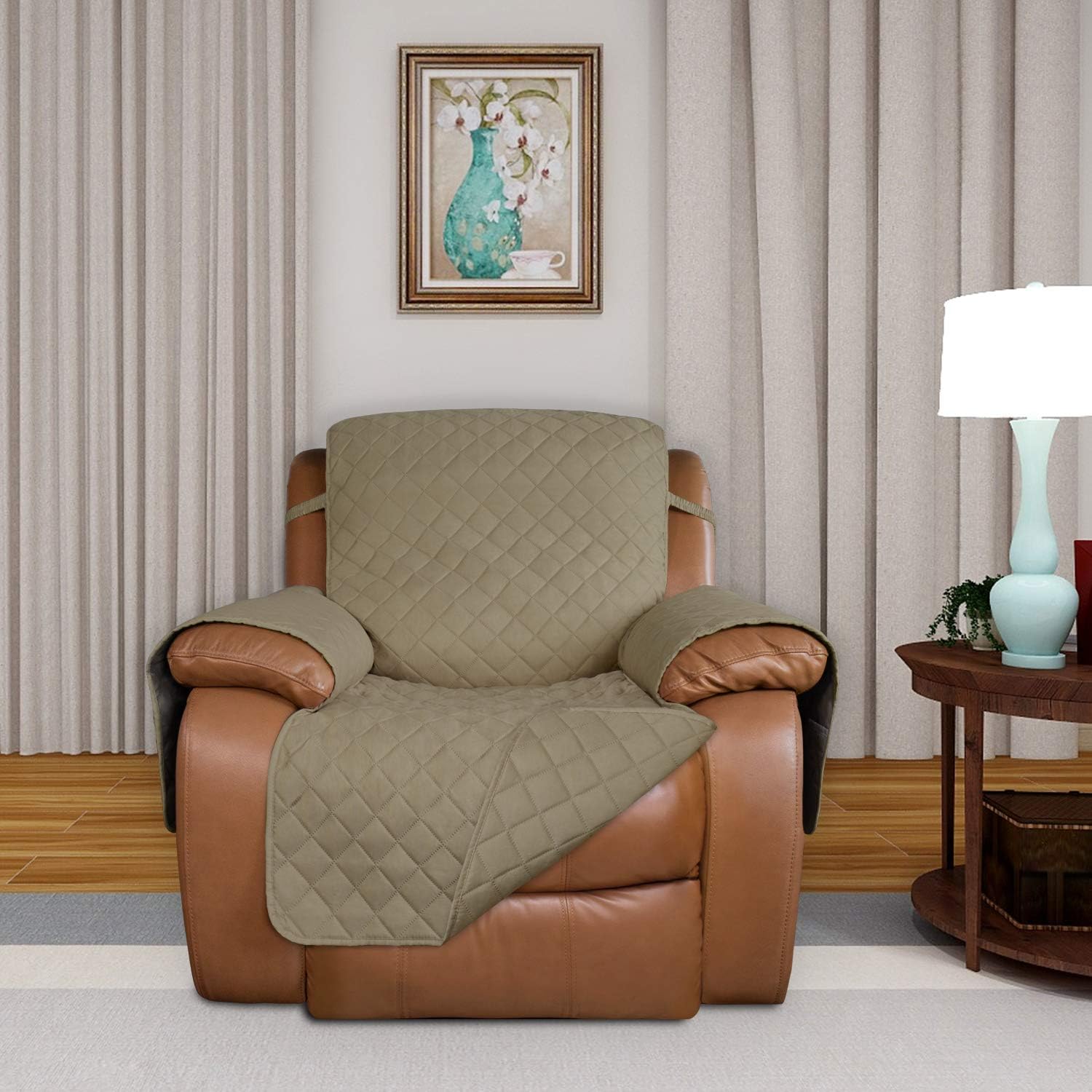 PureFit Reversible Quilted Sofa Cover, Water Resistant Slipcover Furniture Protector, Washable Couch Cover with Non Slip and Elastic Straps for Kids, Dogs, Pets (Oversized Recliner, Beige/Beige)