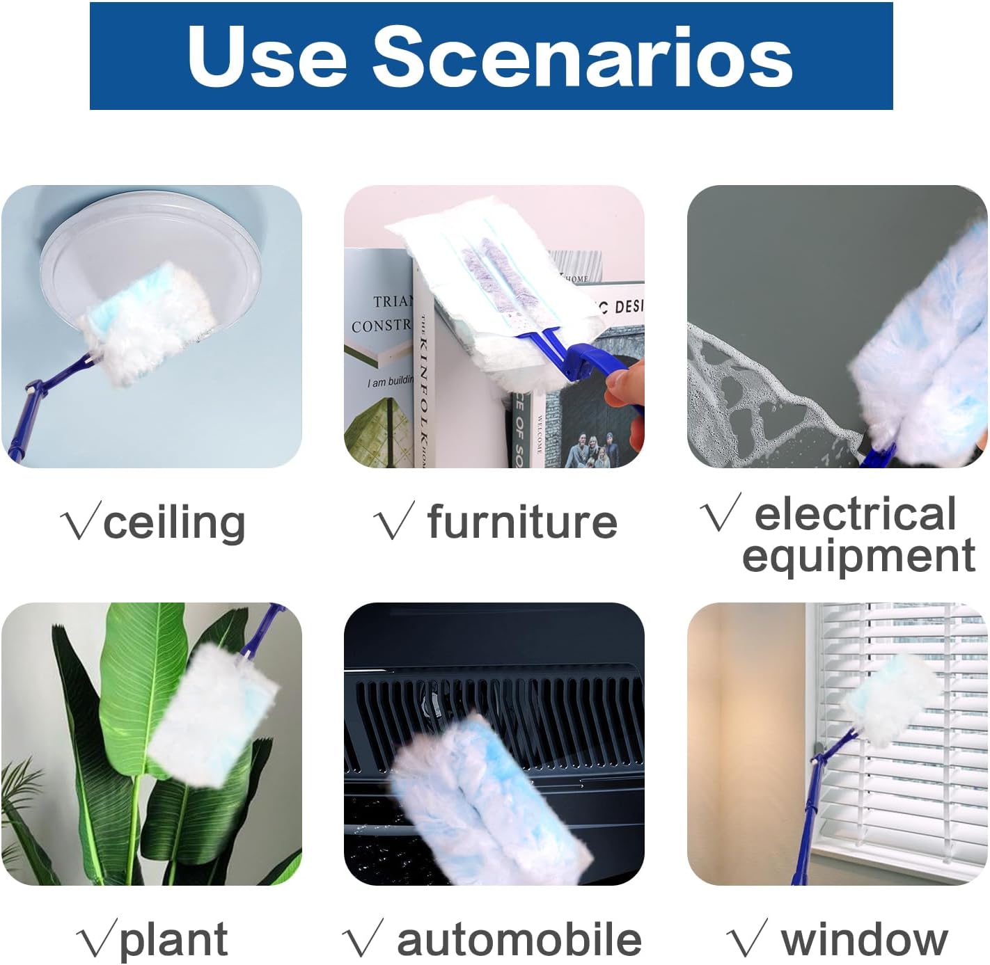 180° Dusters Multi Surface Duster Refills Kit Extender Handle (1 Long Handle to + 1 Short Handle + 15 Duster Refill)