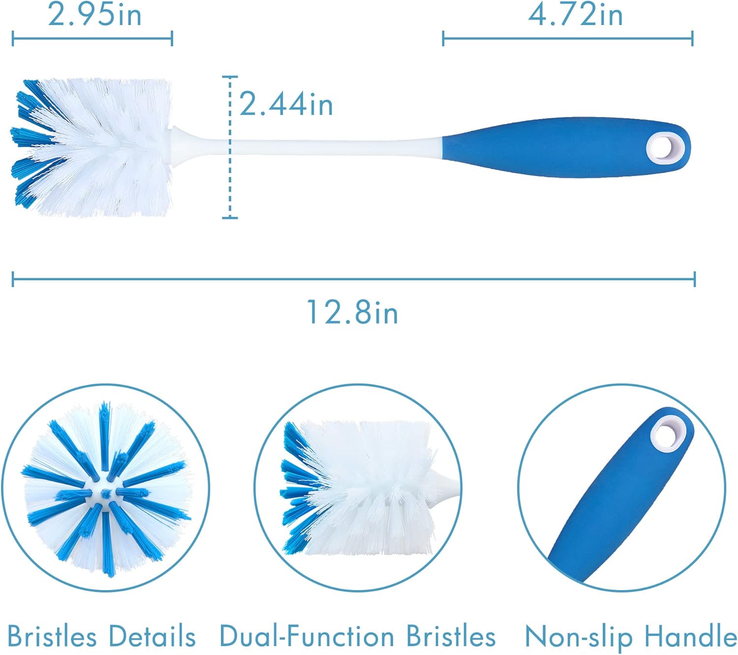 - DURABLE BRISTLE - Made of nylon bristles which are right stiffness and leave no scratches on the bottle during washing. Much better than PET fiber bristles.