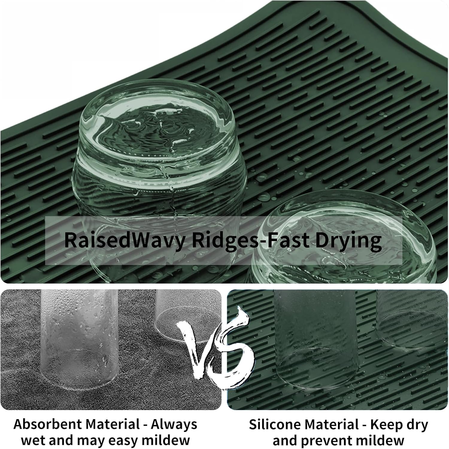 ZLR Silicone Dish Drying Mat for Kitchen Counter, Eco-Friendly Fast Dry Dish Mat, Easy Clean Multi Usage Drying Matt, Heat Resistant Trivet, 16" x 18" XL, Dark Green