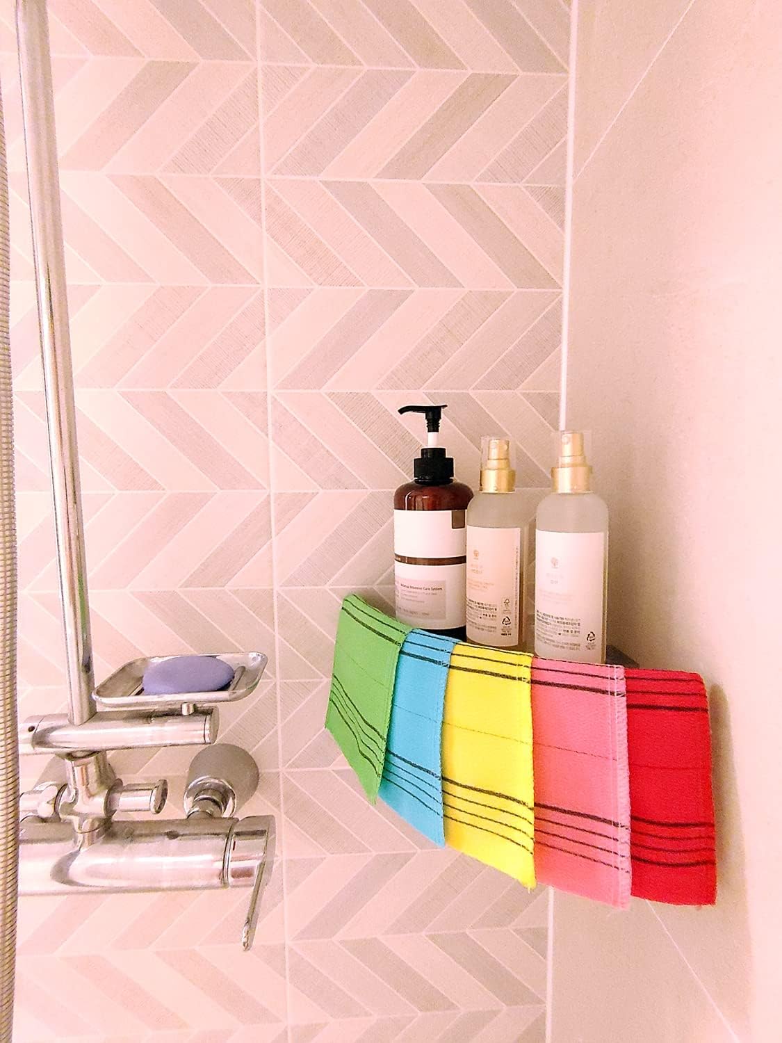 Korean Exfoliating Mitt, Large Size, 5 Colors, Back and Body Exfoliating Washcloth for Removing Dry, Reusable (Mix, 5)