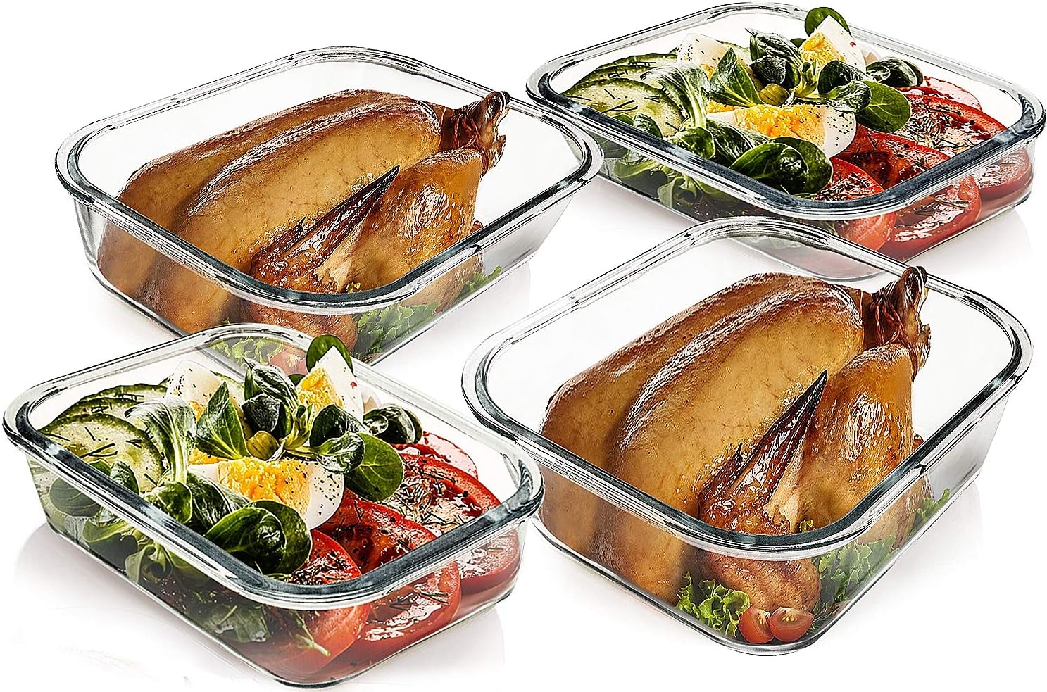 - PREMIUM BOROSILICATE GLASS:Our glass storage containers are made from premium borosilicate glass, which is stronger than other glass food storage containers, safely go straight from the refrigerator to the microwave or oven to the table