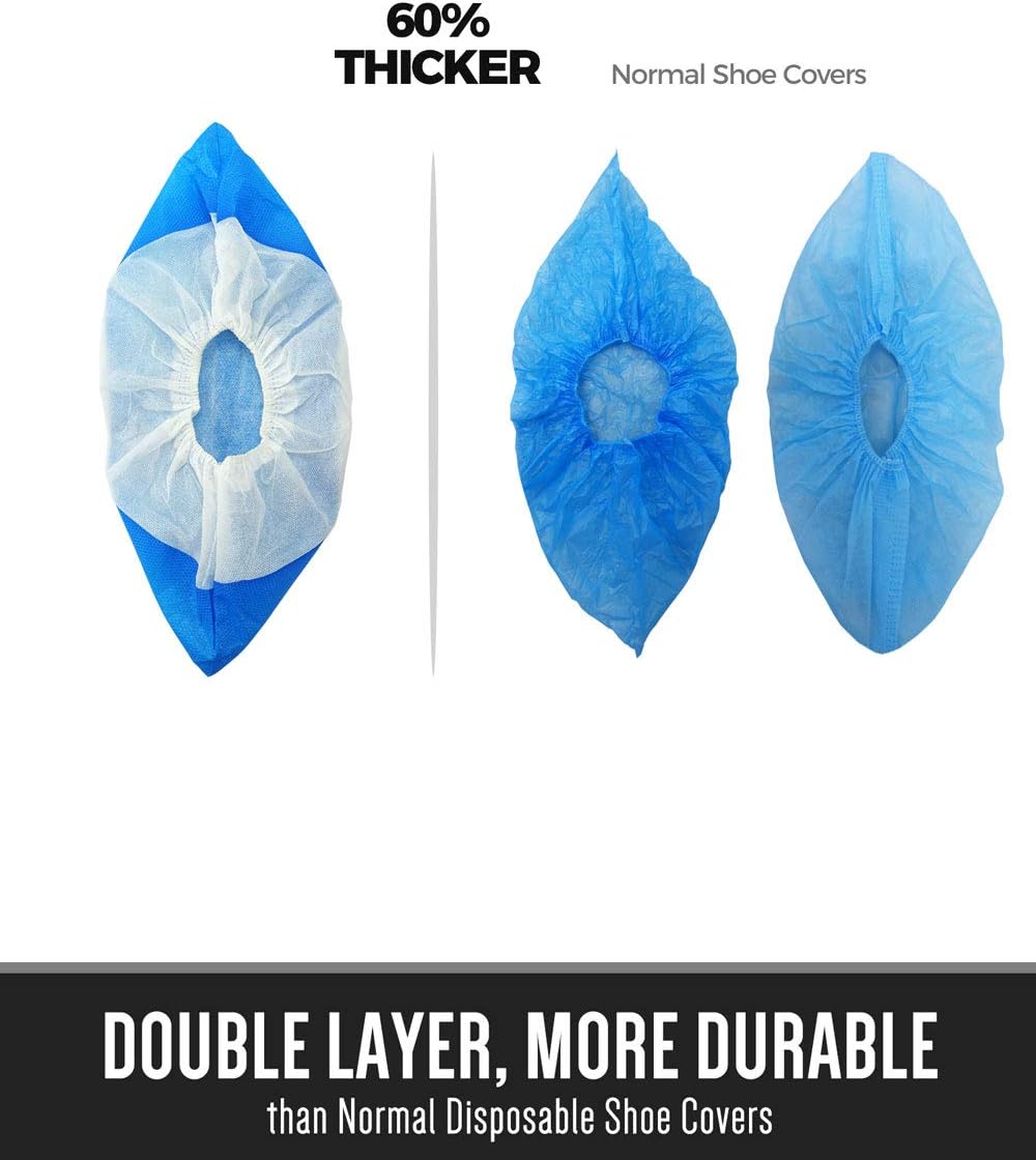 - ✅ EXTRA HEAVY DUTY MADE: In order to make the disposable shoe covers as durable as possible, we used heavy duty material, which is more than 60% thicker than others, and improved the manufacturing process, such as strengthening the rubber band. They can better suitable for working long hours, such as cleaning, nursing or farm working.