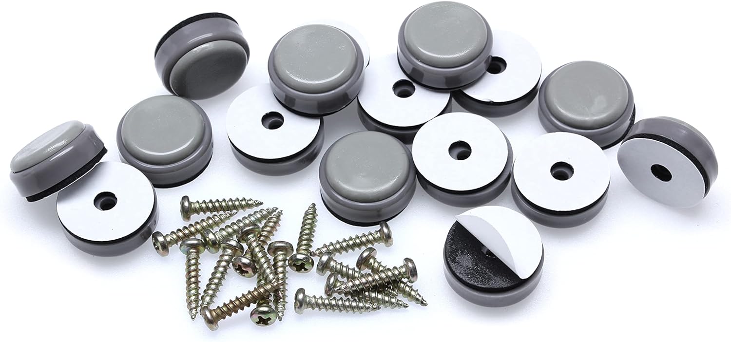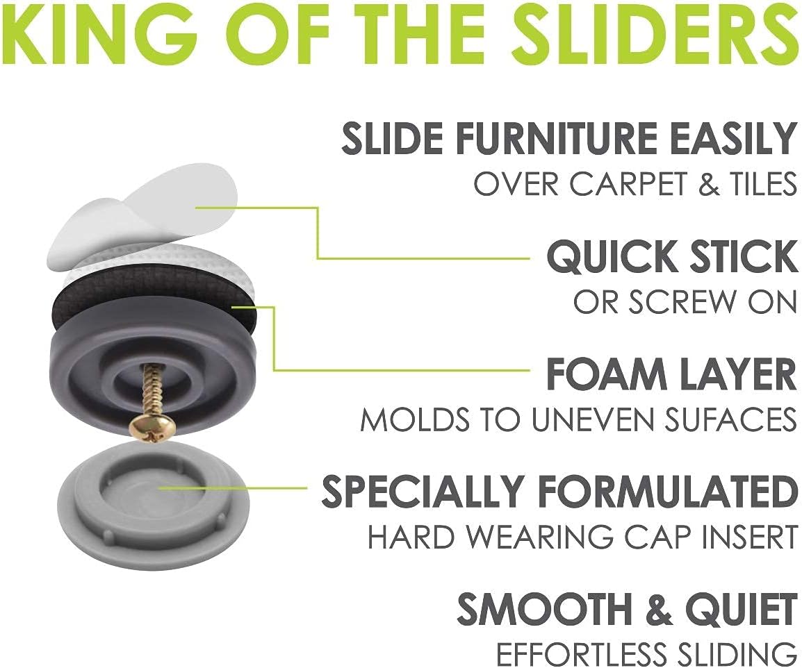 - Screw on self-stick attachment sliders - Includes 16 x 1 inch round plastic chair glides with 7/8β insert slider caps. These premium furniture glides feature self adhesive backings for quick attachment and 16 screws for secure attachment. If sliding on carpet, decking, tile, or rough floor surfaces GorillaGlides must be screwed into furniture with the included installation hardware.