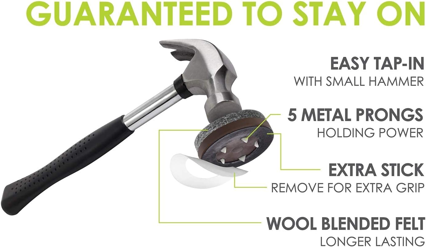 - Felt furniture pads guaranteed to stay on β Each tap in felt furniture glide features 5 steel prongs paired with a strong self-stick adhesive backing that hangs on and will not come off chair legs or furniture feet (not for use on metal furniture or furniture that can't be hammered into). Premium furniture pads designed to stay on furniture legs and last longer.