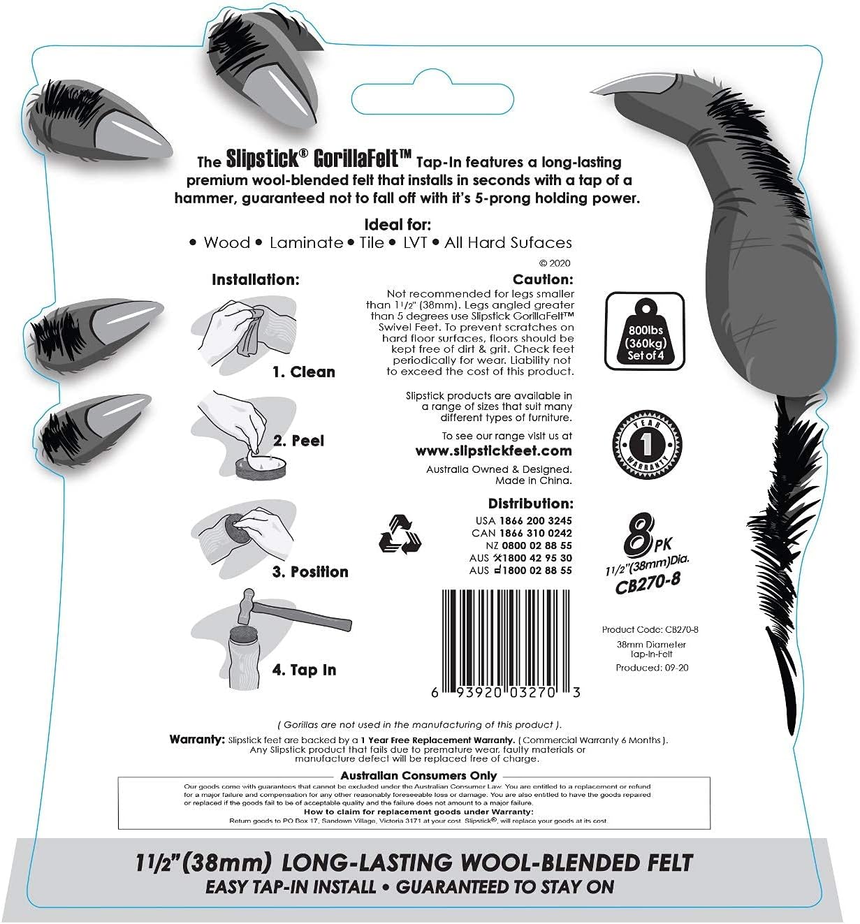 Slipstick GorillaFelt 1-1/2 Inch Felt Glides/Furniture Feet Floor Protectors (Set of 8 Sliders) Nail On Felt Furniture Pads Guaranteed to Stay On, Round, CB270-8