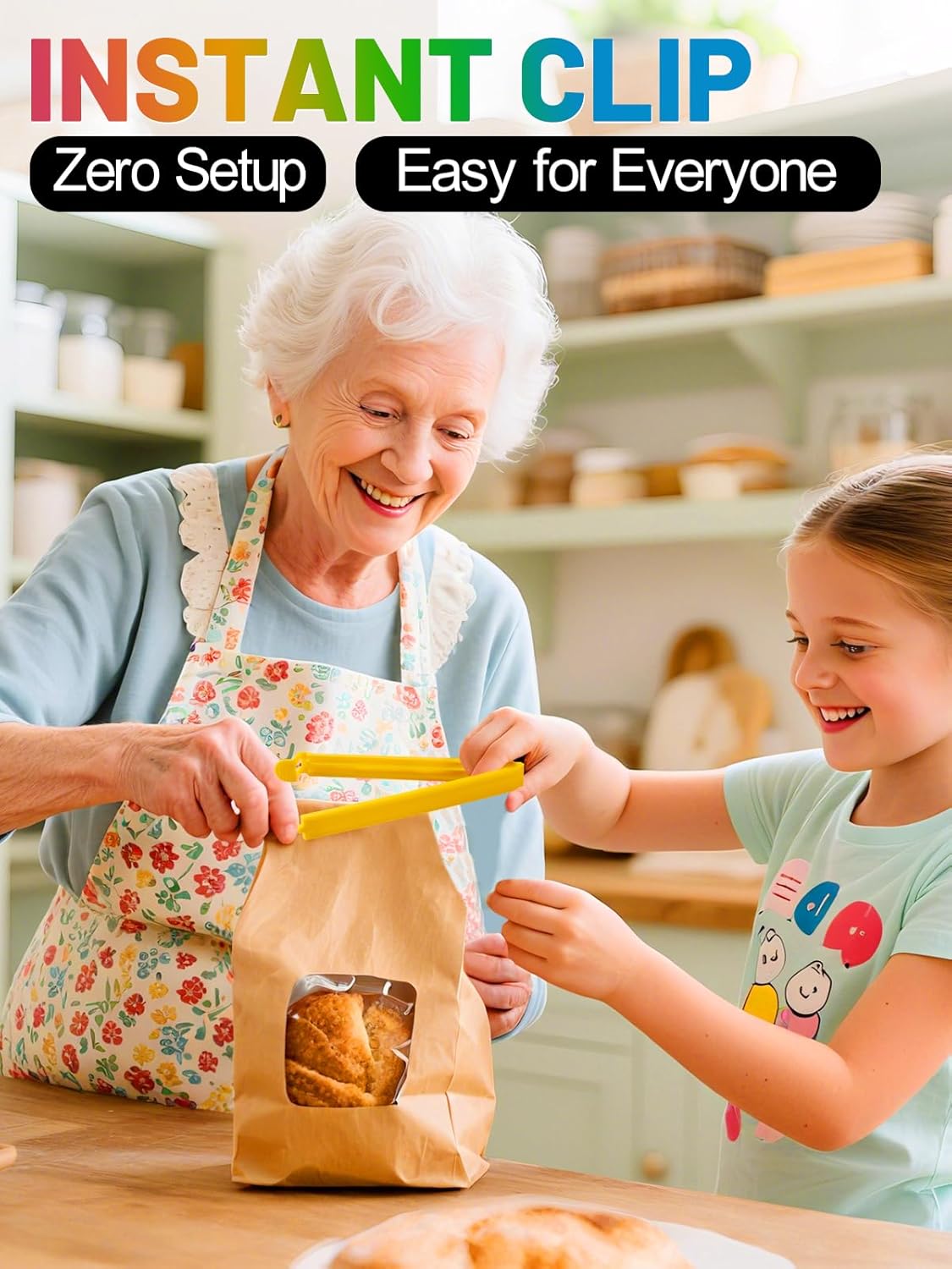- Super Simple for Anyone: Designed for quick, hassle-free use! The intuitive clip-style closure clips on in seconds β no complicated steps. Safe, smooth edges and a manageable grip make keeping snacks fresh a breeze for all ages.