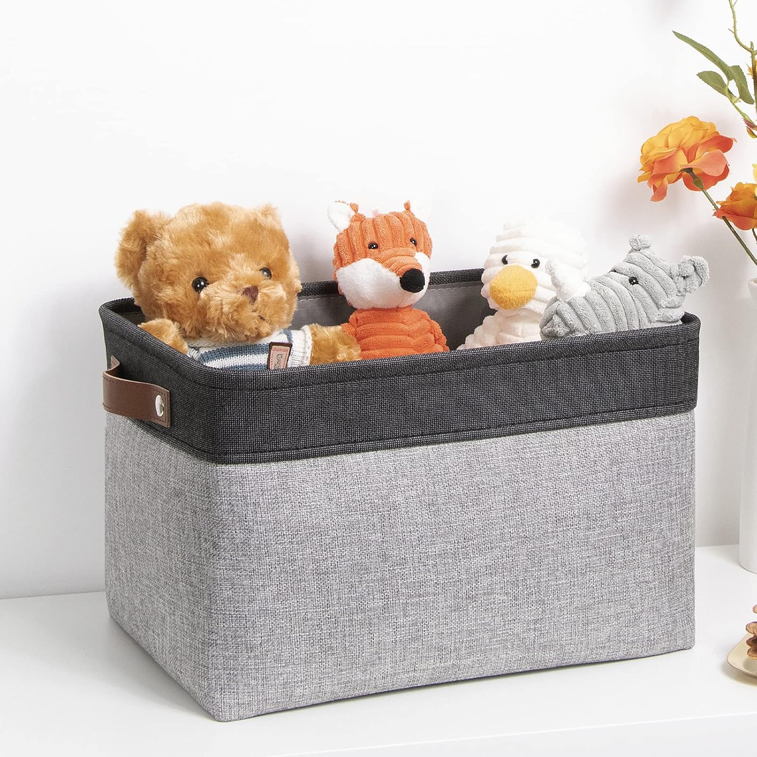 DULLEMELO Fabric Storage Basket for Shelves/Closets, Collapsible Rectangle Basket for Organizing Clothes, Toys, Towels, Books, Laundry, Nursery, Dog Toy Basket Empty (Black&Gray)