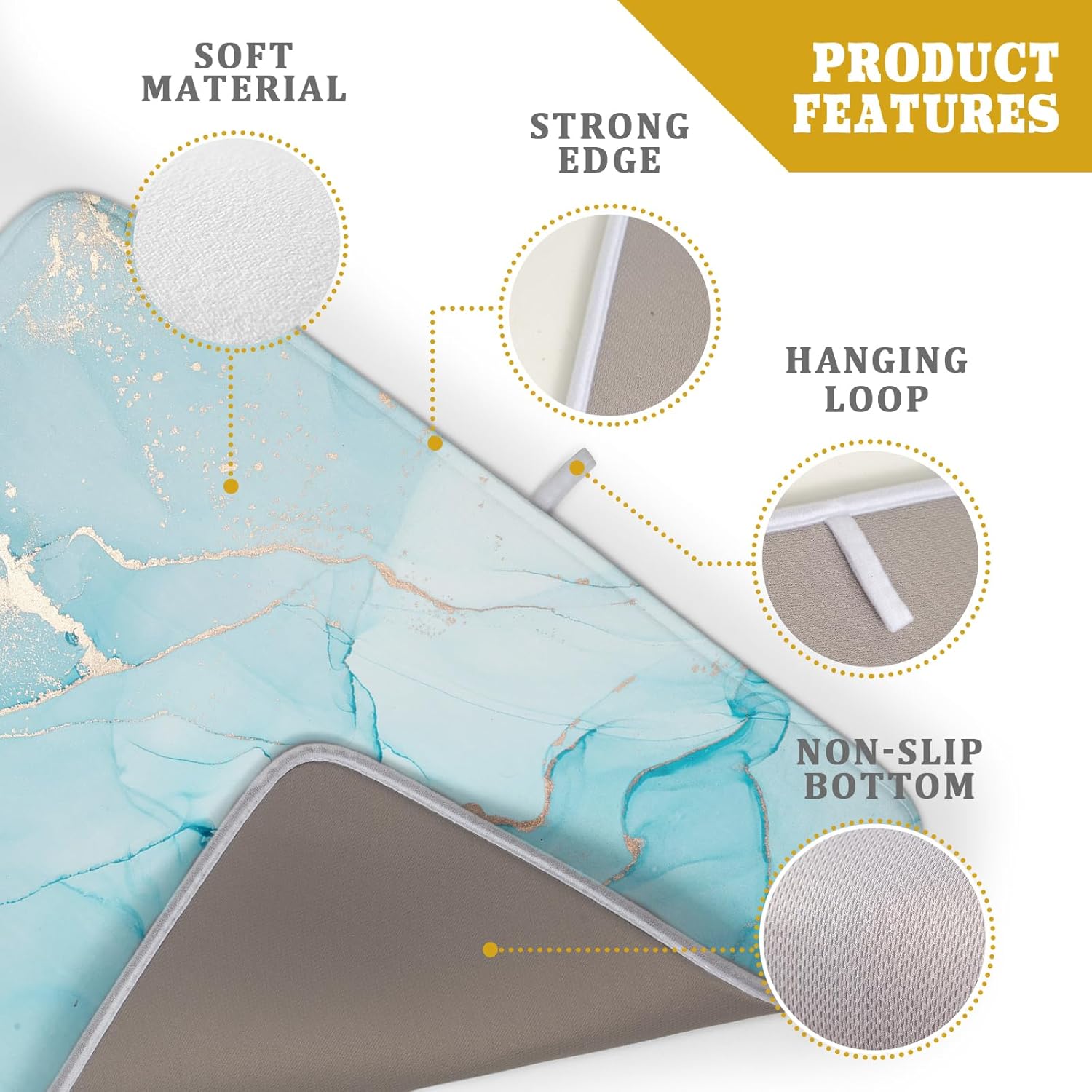 - 【Excellent Absorbent Performance】Premium absorbent Polyester surface and thick Sponge cushion make this Turquoise Glod Marble dish drying mat quick drying. At the same time, it can protect your kitchen counter ,coffee bar or sink from scratching by the tableware.