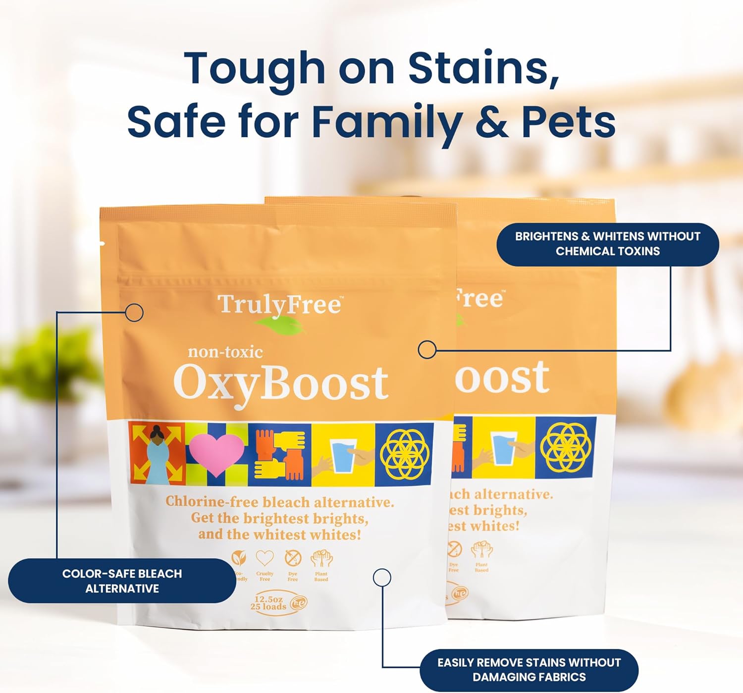 Truly Free OxyBoost - Oxygen Stain Remover Powder for Laundry | Color Safe Stain Remover for Clothes | Chlorine-Free Whitener for Whites & Colors | Oxy Cleaner with Sodium Percarbonate (12.5oz)