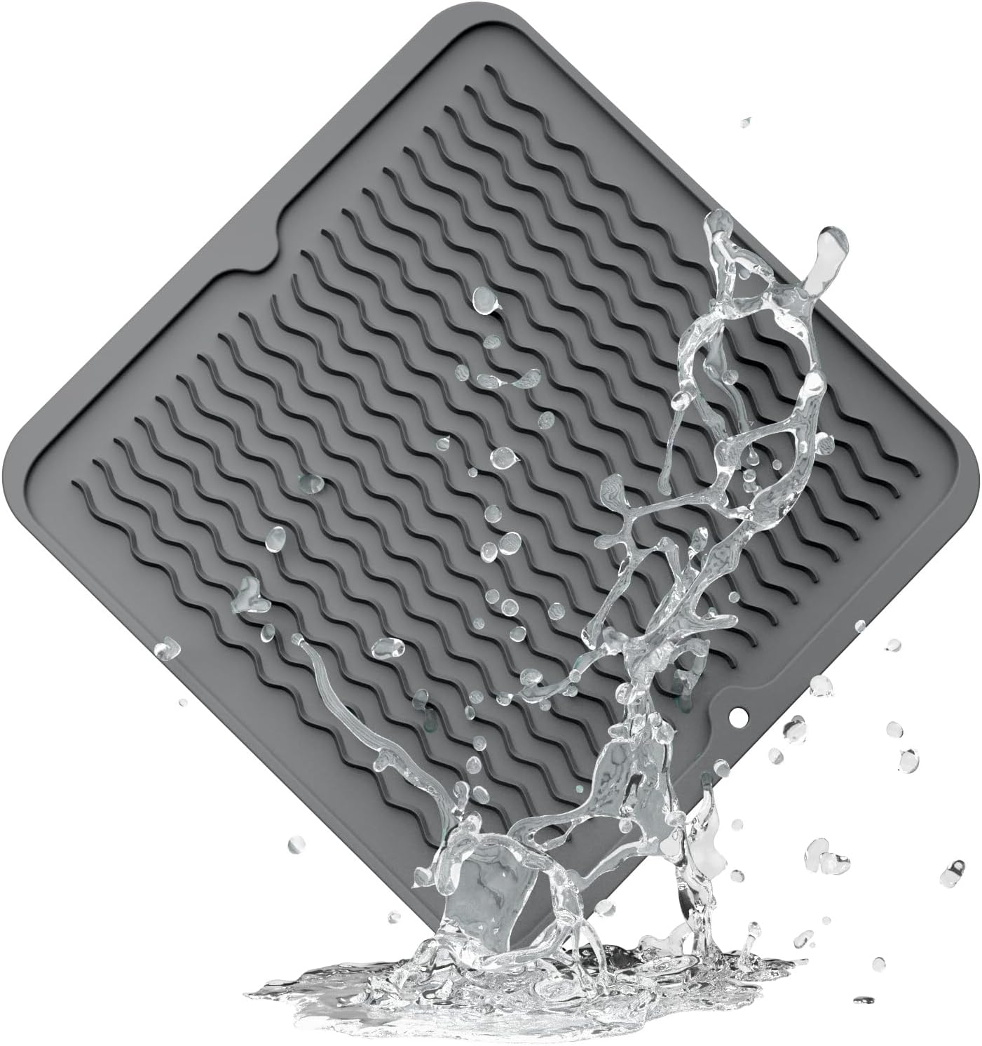 ZLR Silicone Dish Drying Mat for Kitchen Counter, Eco-Friendly Fast Dry Dish Mat, Easy Clean Multi Usage Drying Matt, Heat Resistant Trivet, 12" x 12" Middle, Dark Gray