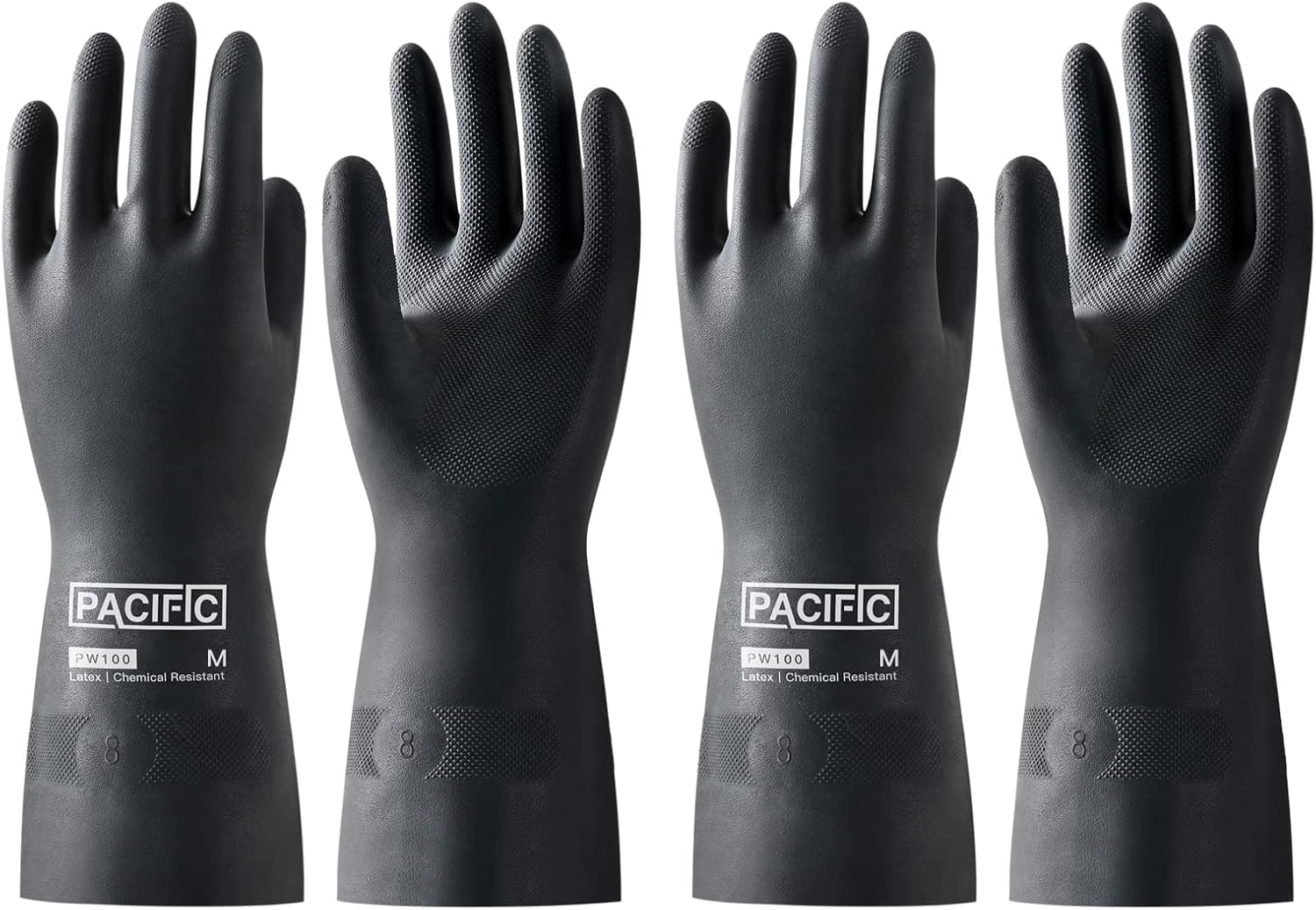 PACIFIC PPE 2 Pairs Chemical Resistant Gloves, Heavy Duty Industrial Rubber Gloves, Resist Acid, Alkali and Oil, 12.6", Medium