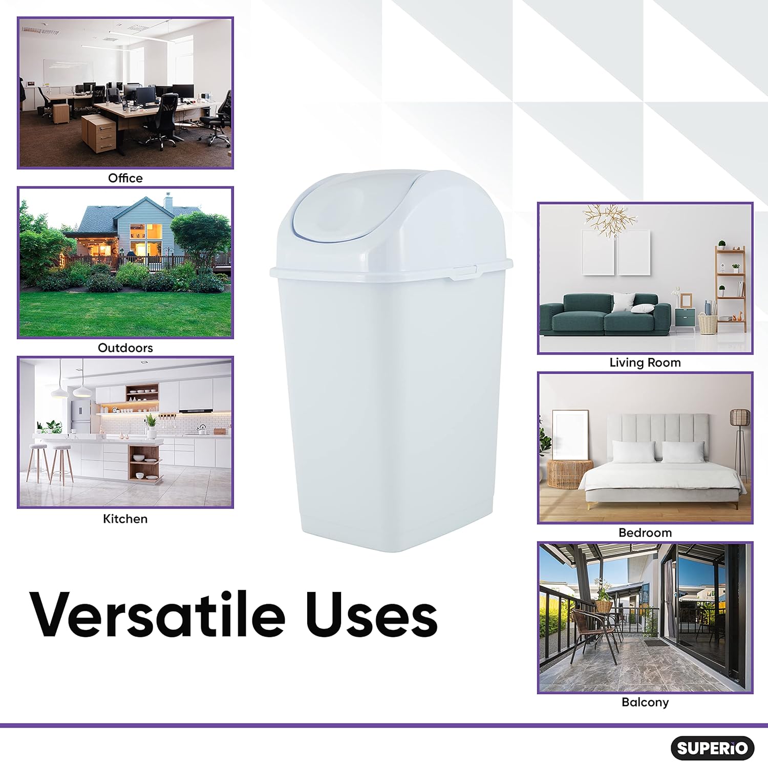 - Large Capacity β Superio lidded trash can has the perfect size for any type of outdoor or indoor waste bin application, with a capacity of 13 gallons, you wonβt have to take out the trash multiple times. Ideal to use as a large outdoor trash can with lid or as kitchen waste bins.