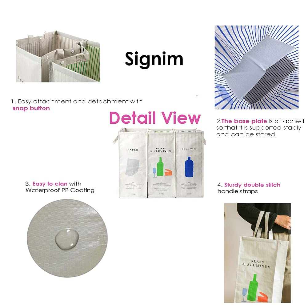 216 Separate Recycling Waste Bin Bags for Kitchen Home Recycle Garbage Trash Sorting Bins Organizer Waterproof Baskets Compartment Container, White (Set of 3 Pack)