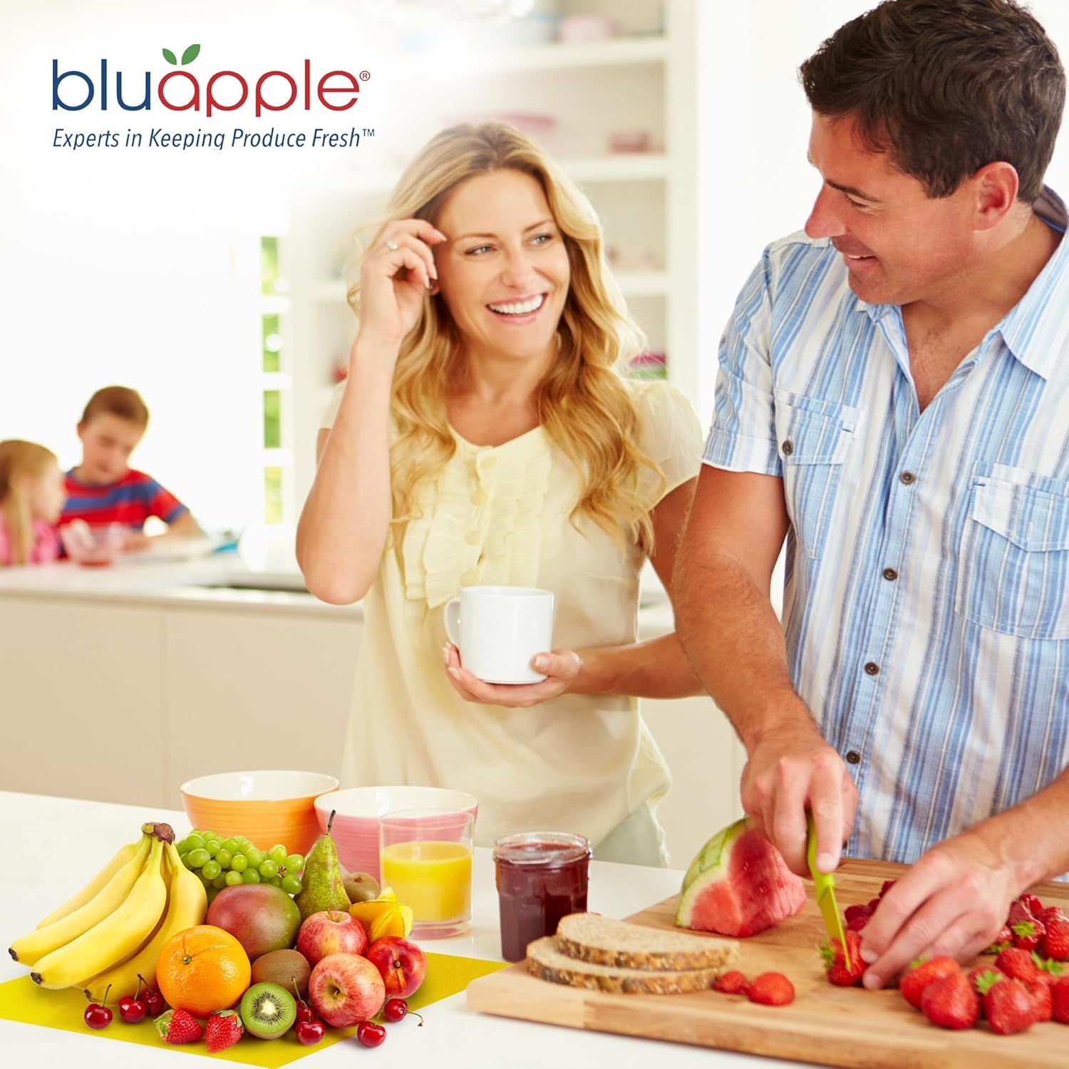 Bluapple FreshMats, Refrigerator Bin Liner, Fridge Drawer Mats, Crisper Life Extender Liner Keeps Produce Fresh Longer, Anti-Bruising, for Air Circulation, Washable & Reusable (4-Mats, 12x15, Yellow)