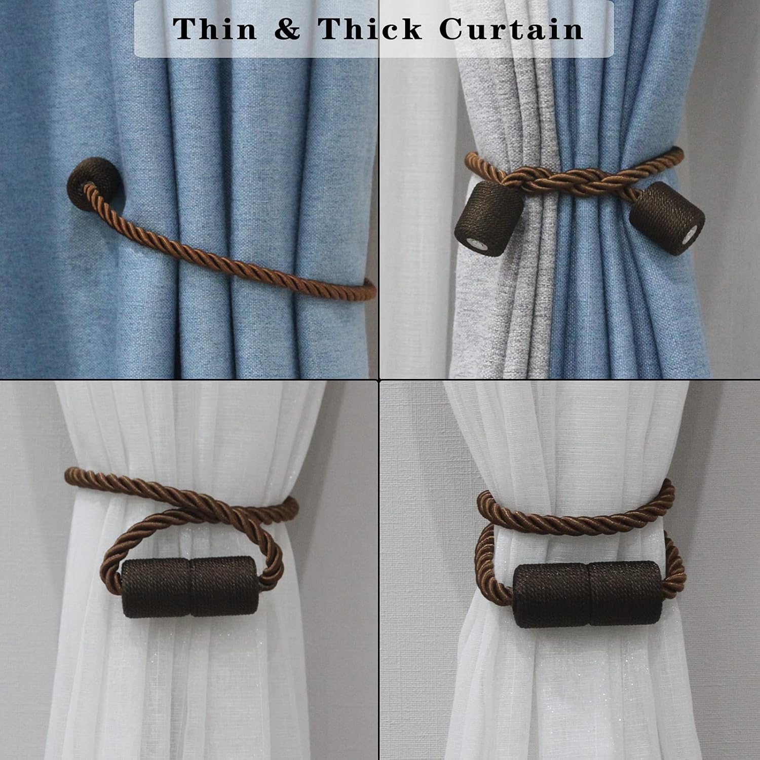 4 Pack Strong Magnetic Curtain Tiebacks Outdoor Elegant Decorative Tie Backs Modern Rope Tiebacks for Drapes Window Curtain Holdbacks for Draperies- Coffee