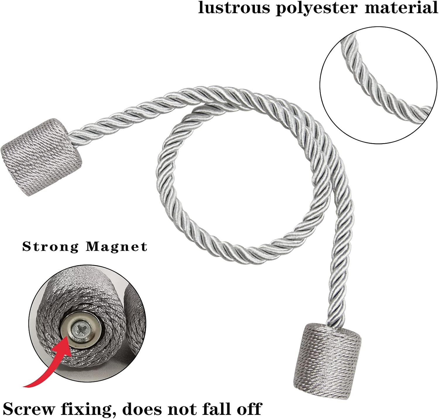 - Our products do not need to use hooks and will not damage your walls. when you are not using tie-backs for curtains, you can attach them to any position of the curtain without worrying that magnetic curtain holdbacks will be lost for the next use. The attractive modern look of these rope curtain tiebacks perfectly matches your bedroom, living room, office, and so on, and meets daily use. Best as a gift or for self-use.
