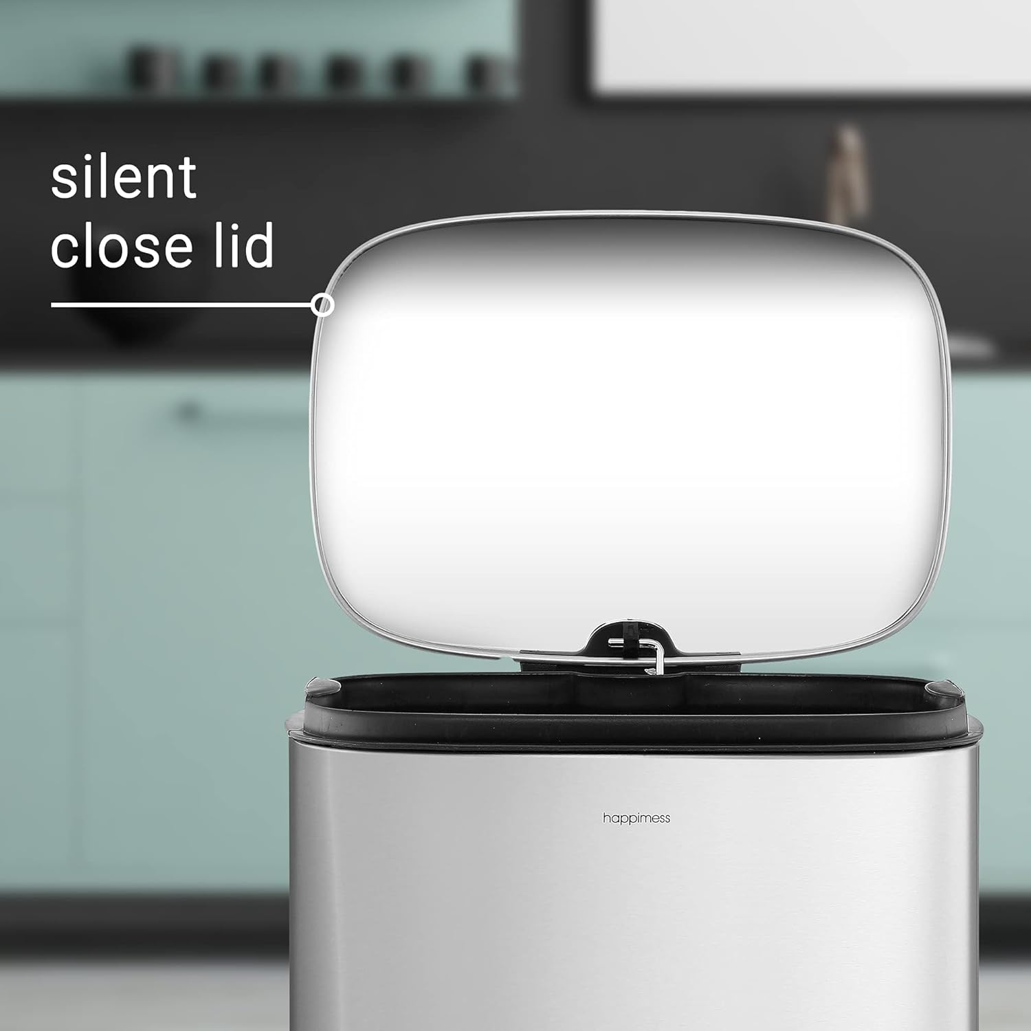 - STYLISH & PRACTICAL DESIGN: happimess Trash Cans clean-lined designs blend beautifully into your existing decor; Dispose of trash hands-free with our convenient step pedal; built-in damper lowers the lid quietly, and closes it tightly to keep odors inside
