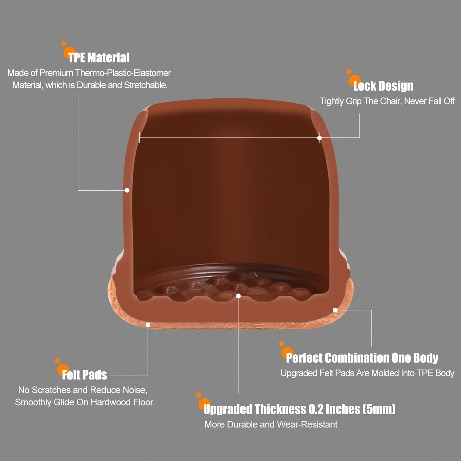 - ☛【Not Easy to Fall Off】- Chair leg covers is made of premium soft thermo-plastic-elastomer material, which is stretchable. They are easy to slip-on, no need to stick, and have strong adhesion, it tightly wrap legs, and not easy to fall off.
