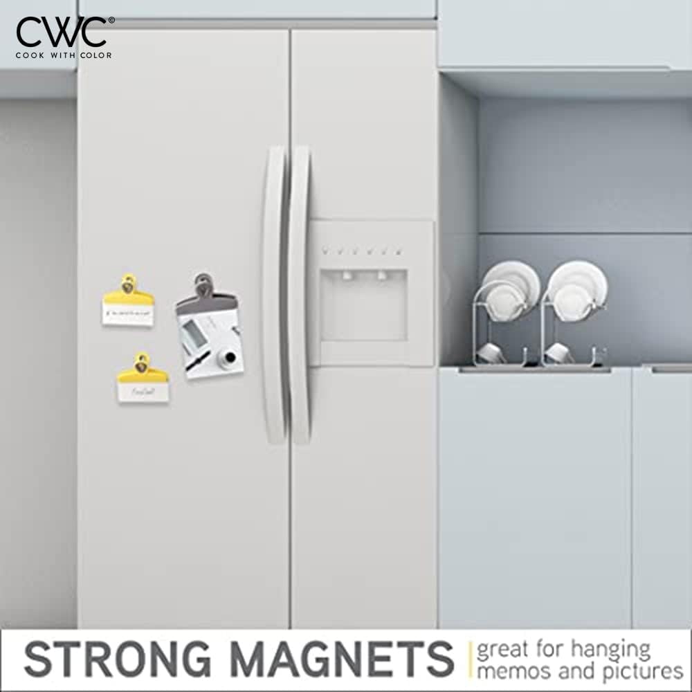 - Fun and colorful clips with a useful magnet in the back - keep these handy helpers readily available on your fridge for an easy reach and access. Can be used to hold light objects.