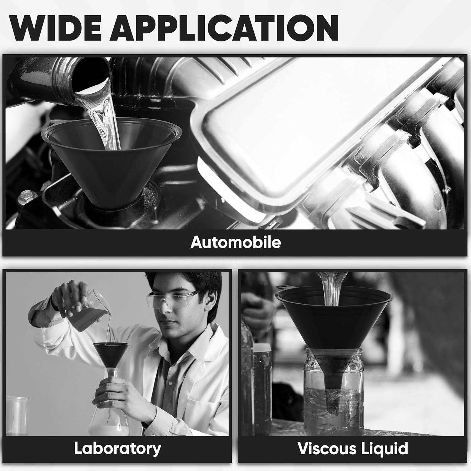 - Make Your Life Easier: Our funnel set is the perfect solution not only for transferring oil, spices, or car fuel but also for craft projects. Use the mini funnels for filling small bottles to sprinkle decorations on your art projects or for laboratory tasks at school.