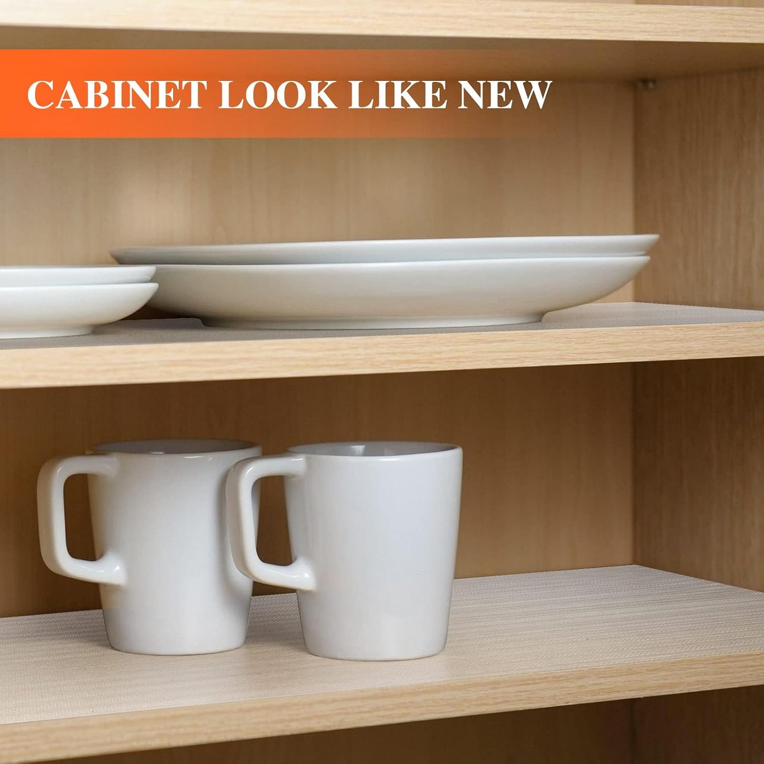 - ăEASY TO CLEANă: Washable clear cabinet liner help to protect your cabinets shelves and drawers from wetting, accumulating stains and dirt. you can easily wash any stains with water or neutral soap and this shelf liner doesn't leave any stain marks and dry quickly.