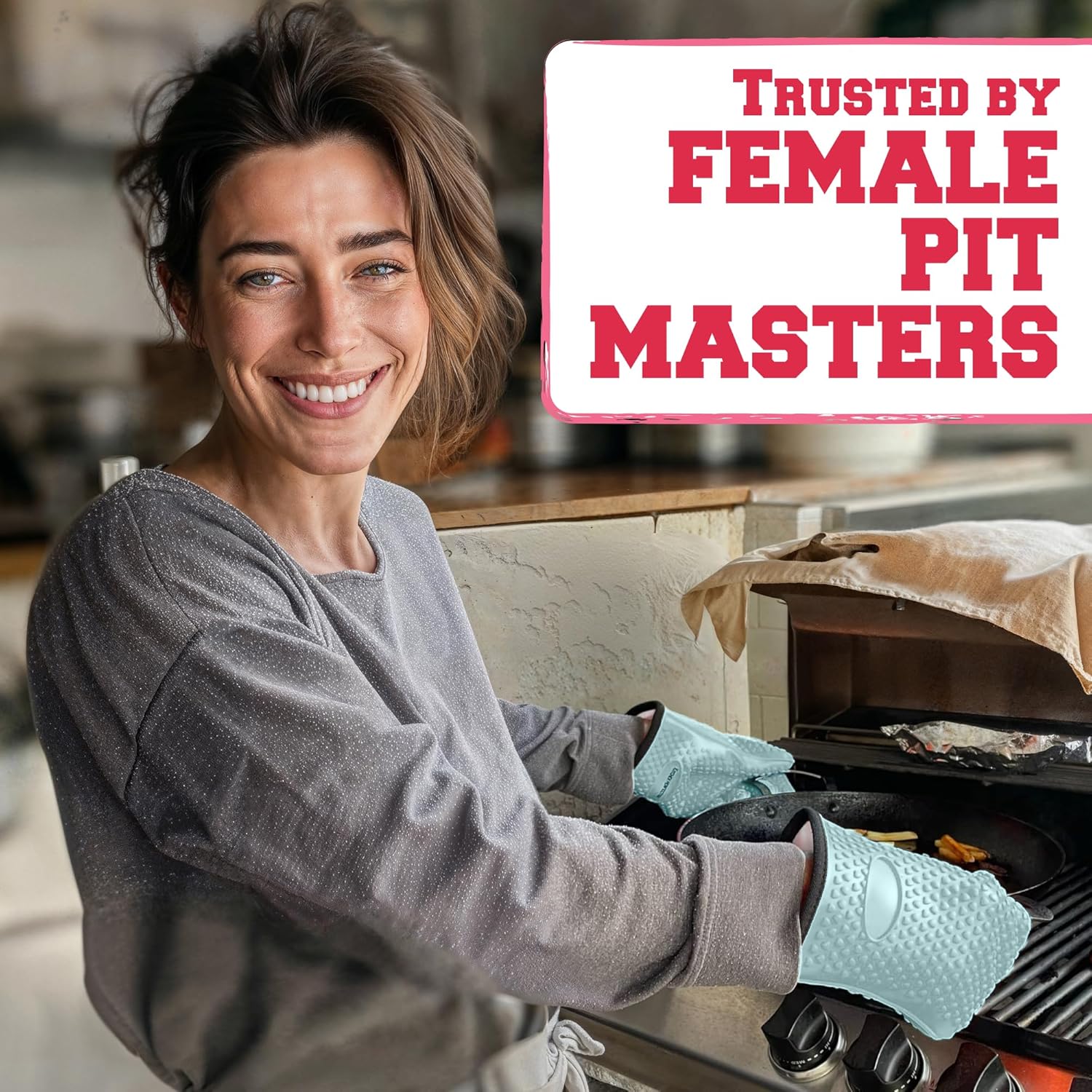 KITCHEN PERFECTION XL Silicone Smoker Oven Gloves for Women -Extreme Heat Resistant BBQ Gloves -Handle Hot Food Right on Your Grill Fryer&Pit|Waterproof Grilling Cooking Mitts|Superior Set+3 Bonuses