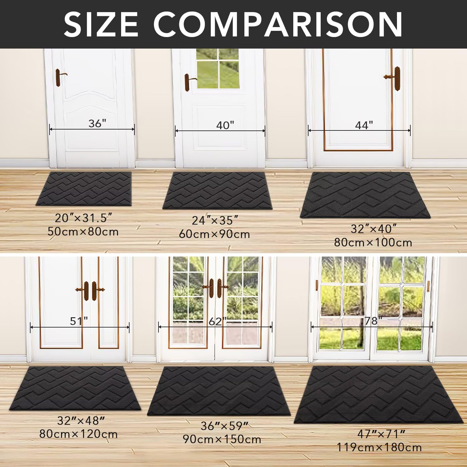 hicorfe Indoor Door Mat,Non Slip Door Mats,32"x48" Front Back Door Mat Rubber Backing,Absorbent Resist Dirt Entrance Inside Floor Mats for Entryway Washable Low-Profile(Charcoal)