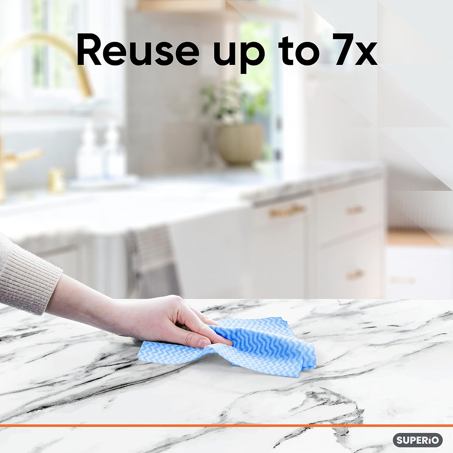 Superio Handy Wipes for Kitchen - Blue Reusable Multi-Purpose Heavy-Duty Cleaning Cloth for House, Bathroom, and Office. Disposable Dish Towel (10)