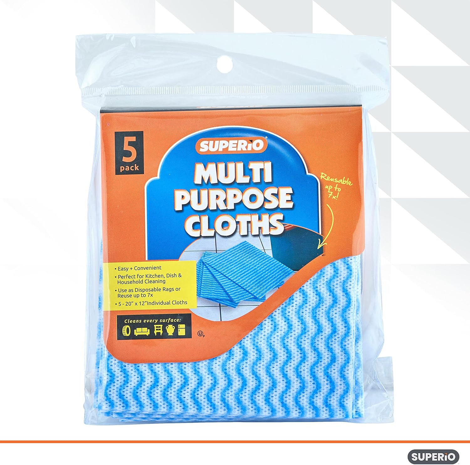 Superio Handy Wipes for Kitchen - Blue Reusable Multi-Purpose Heavy-Duty Cleaning Cloth for House, Bathroom, and Office. Disposable Dish Towel (20)