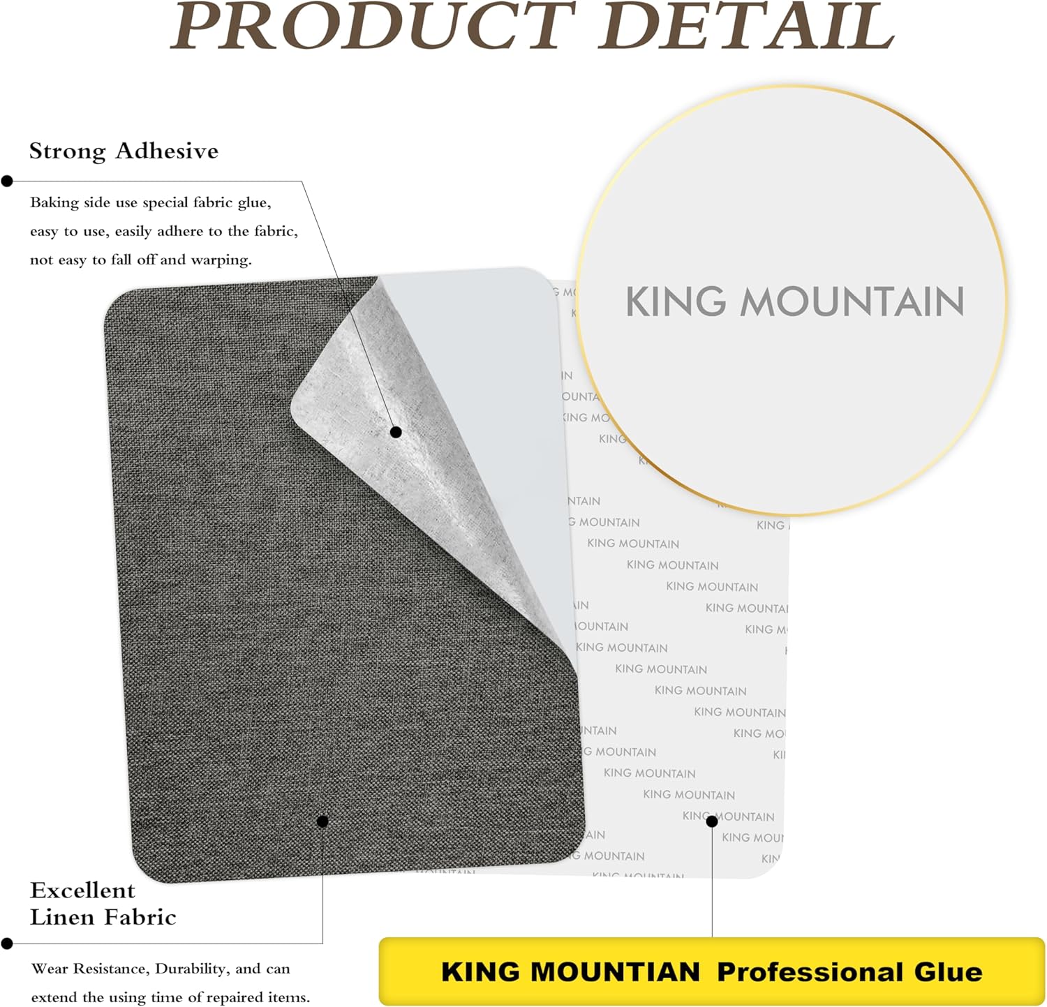 KING MOUNTAIN Fine Linen Repair Patches, Self-Adhesive Linen Fabric Patches, 8X11 inch Extra Size, Multi Color, Can be Used for Linen Sofa Repair and Linen Clothes Repair(8" x 11",Dark Grey 2.0)