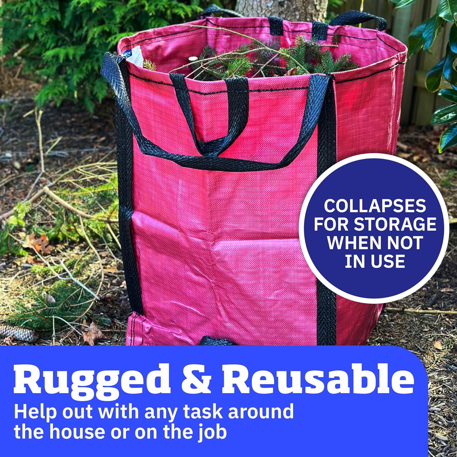 DURASACK Heavy Duty Home and Yard Bags 48-Gallon Reusable Self-Standing Lawn and Leaf Bags Garbage Can with Reinforced Handles, Red