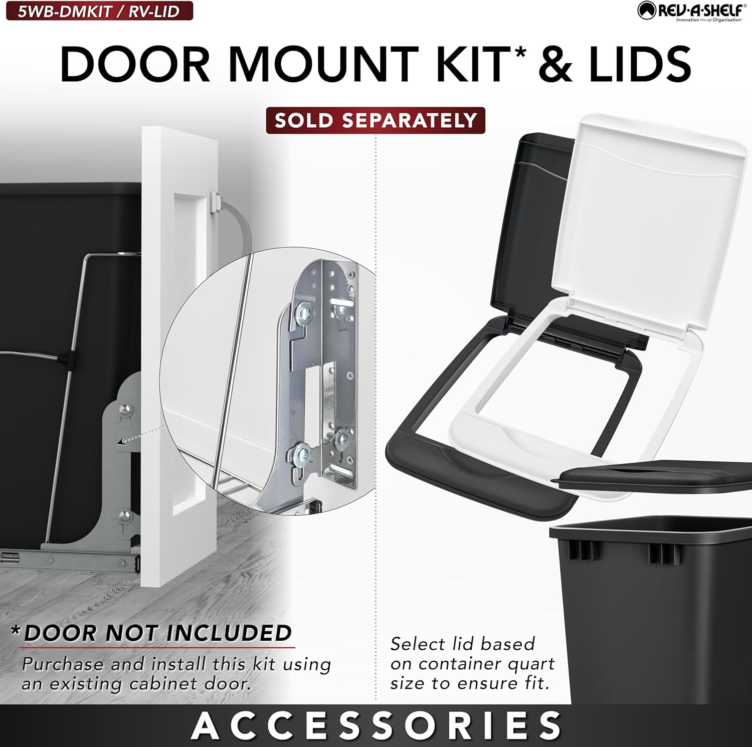 - Easy Install Waste Bin: Installs in just 15 minutes this pullout container comes with everything you need for installation; mounts to cabinet floor; remove handle and mount to the cabinet door with the 5WB-DMKIT (sold separately)