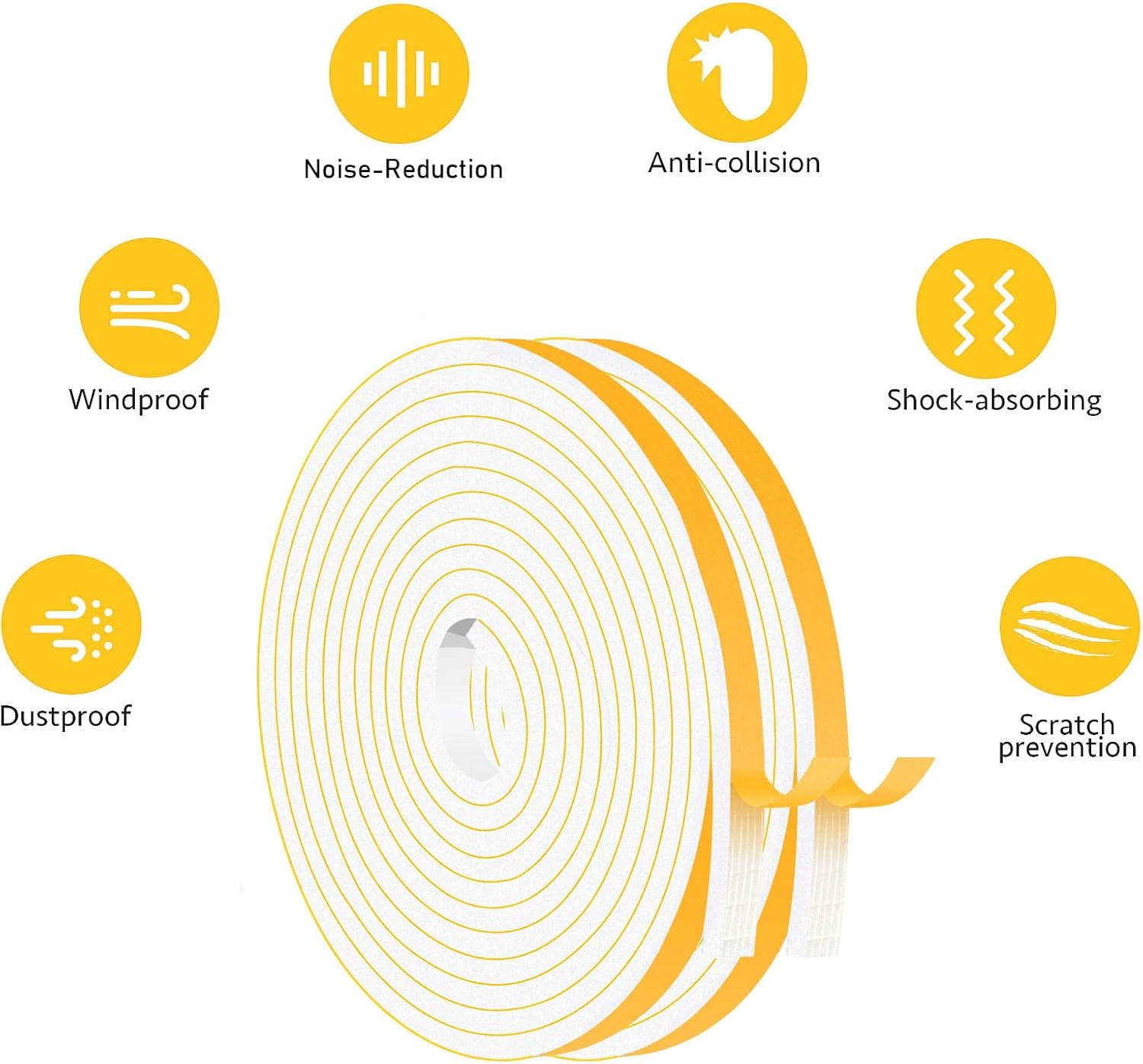 - 🟠2 ROLLS VALUE PACK-This package includes 2 rolls of 1/2 in x 1/4 in x 13Ft high density door insulation strip, total 26Ft in length, which means that two rolls foam seal tape are packed together.