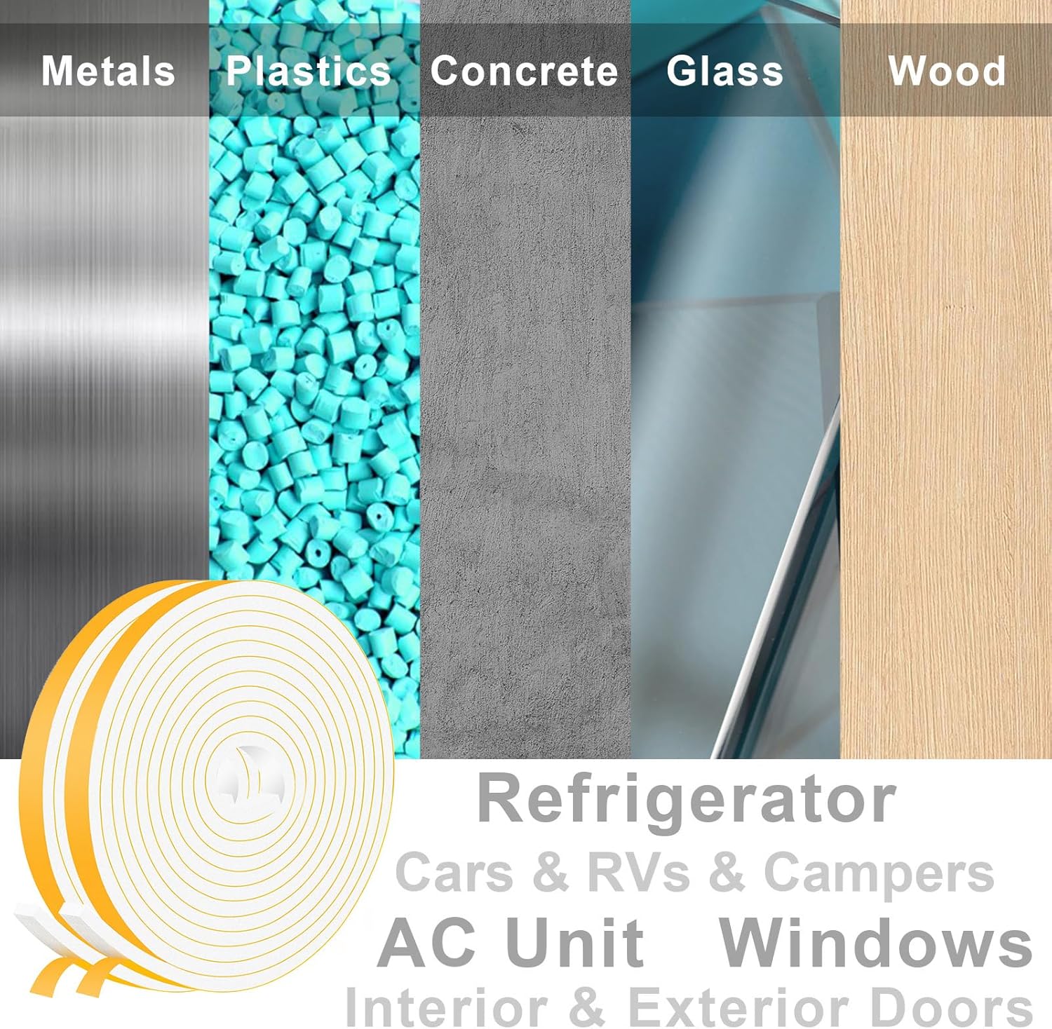 - 🟠WIDE APPLICATION-Trisiki's Foam Insulation Tape is a tough, durable self-stick tape with minimal compression and can help prevent rattles, vibrations and squeaks. It's widely used as a weatherstrip, or as a gasket or to cushion and stabilize major appliances, such as doors, windows, furniture, electrical cabinets, speakers, toys, handicrafts, sports equipment, vents, air conditioners, plumbing, hvac. Plus, on cars, trucks and boats