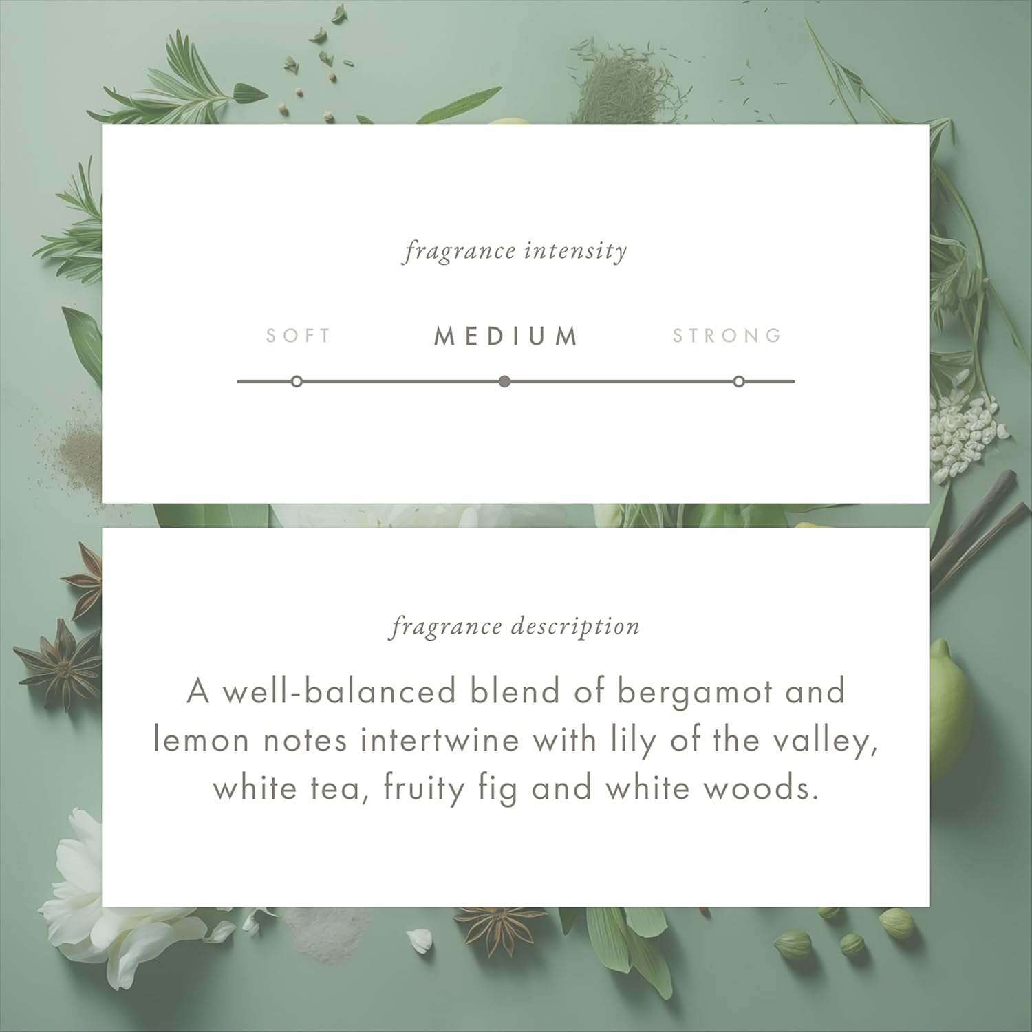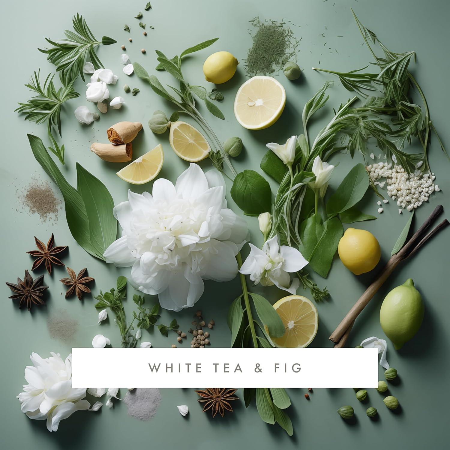 - DRINK IN THE AMBROSIAL BLEND OF WHITE TEA & FIG. Delicately sweet white tea brings aromas of floral jasmine and lily of the valley as a hint of bright, juicy lemon invigorates the senses. Fresh, honeyed fig lends earthy, nutty notes that are rich with warm current, amber, and musk. Itβs a heavenly fragrance, infusing the world with balance and beauty.
